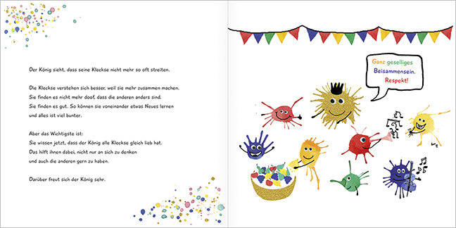 Fröhlich buntes Kinderbuch mit lustigen KlecksenEine Geschichte, kindgerecht und humorvoll geschrieben, die Mut und Lust auf ein fröhlich-buntes Miteinander macht.Zum Inhalt:Die Kleckse im Klecksland sind ganz verschieden. Sie sprechen unterschiedliche Sprachen und mögen verschiedene Dinge. Leider führt das oft zu Streit. Doch Ihren König lieben sie alle. Und der hat ein Geheimnis, das alles ändern kann ... 36 Seiten, gebunden, 23 x 23 cm, durchgehend bebildert.