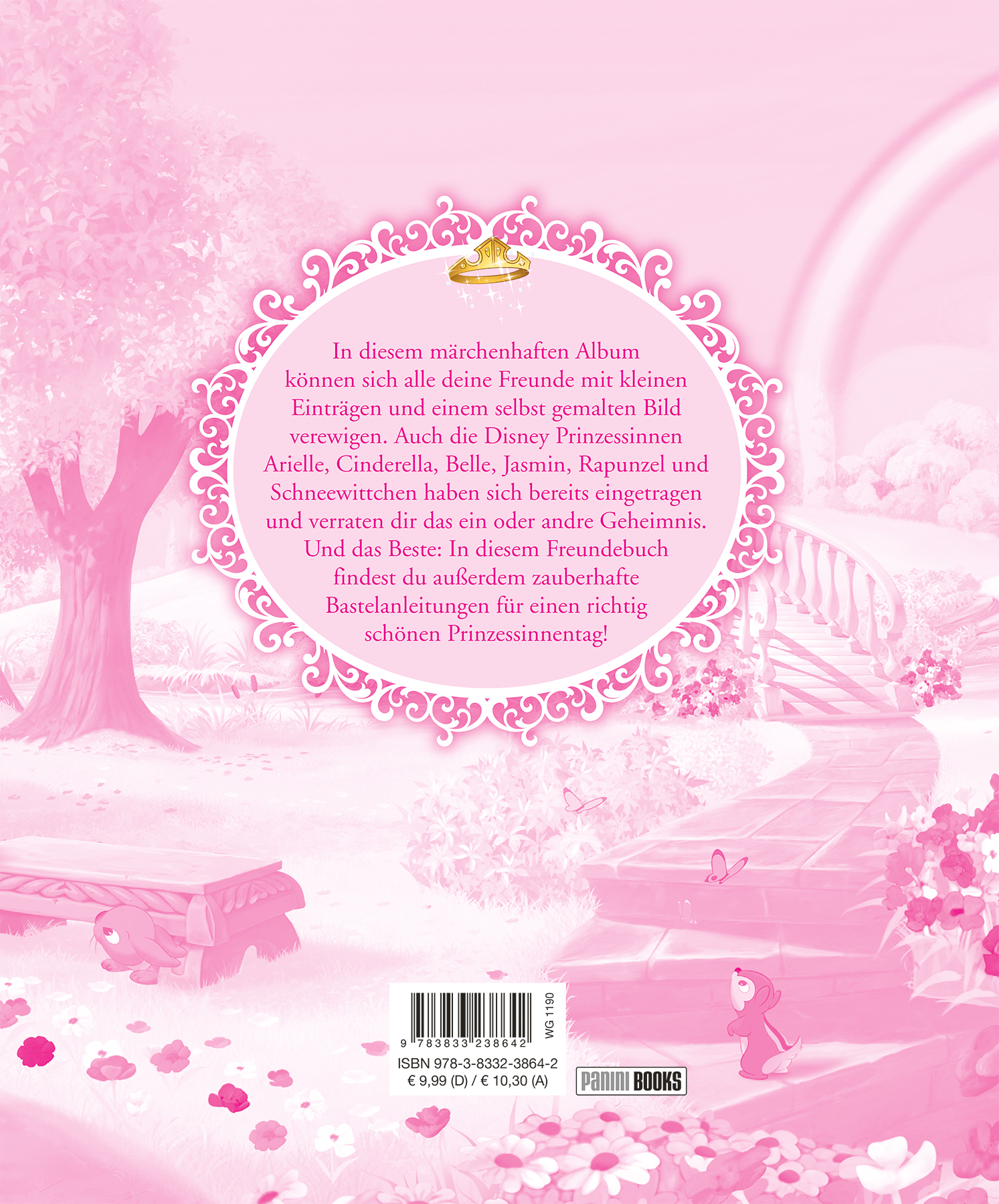 In diesem märchenhaften Album können sich alle deine Freunde mit kleinen Einträgen und einem selbst gemalten Bild verewigen. Auch die Disney Prinzessinnen Arielle, Cinderella, Belle, Jasmin, Rapunzel und Schneewittchen haben sich bereits eingetragen und verraten dir das ein oder andre Geheimnis. Und das Beste: In diesem Freundebuch findest du außerdem zauberhafte Bastelanleitungen für einen richtig schönen Prinzessinnentag!