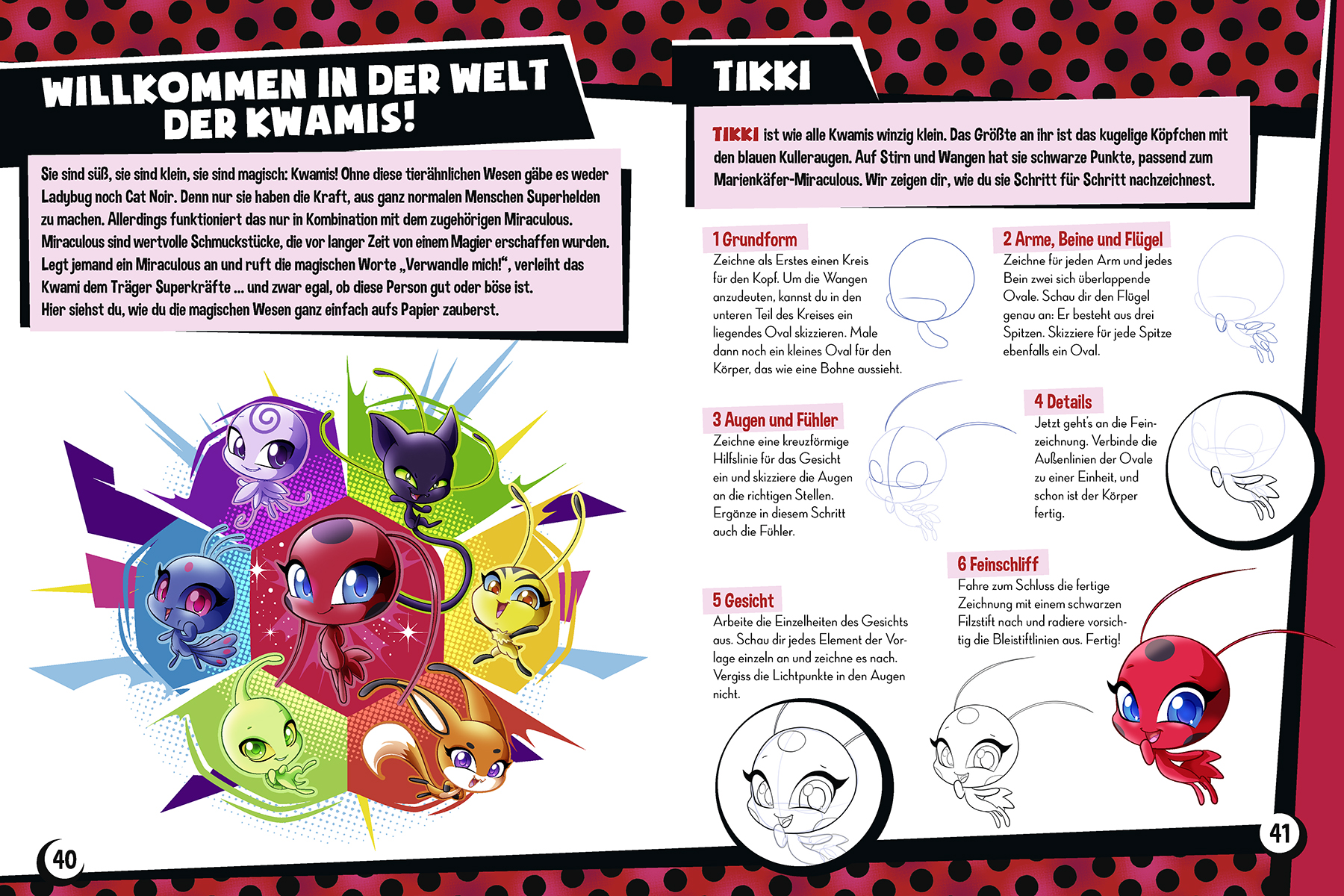 Ob Ladybug, Cat Noir oder die kleinen magischen Kwamis - in der großen Miraculous-Zeichenschule können die Fans jetzt ihre Helden ganz einfach aufs Papier zaubern. Die Schritt-für-Schritt-Anleitungen führen zu tollen Ergebnissen und ermöglichen stundenlangen Zeichenspaß!
