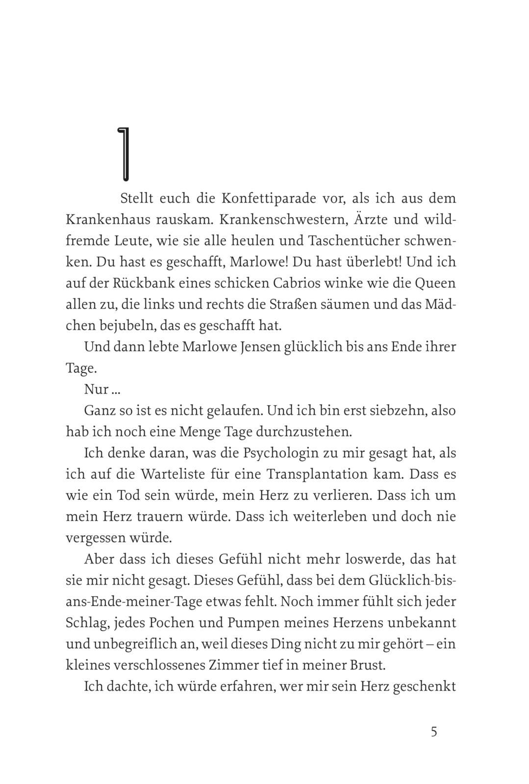Marlowe hat ein neues Herz bekommen und eigentlich sollte jetzt alles gut sein. Doch die Frage, wem sie das zu verdanken hat, lässt sie nicht los. Und so macht Marlowe sich auf die Suche nach der Familie ihres Spenders und findet schließlich seine Schwester. Die beiden freunden sich an, doch Marlowe verschweigt, wer sie wirklich ist. Je länger sie schweigt, desto schwieriger wird es, die Wahrheit zu sagen. Und dann ist da noch Leo von nebenan, der ihr Herz aus einem ganz anderen Grund zum Stolpern bringt.