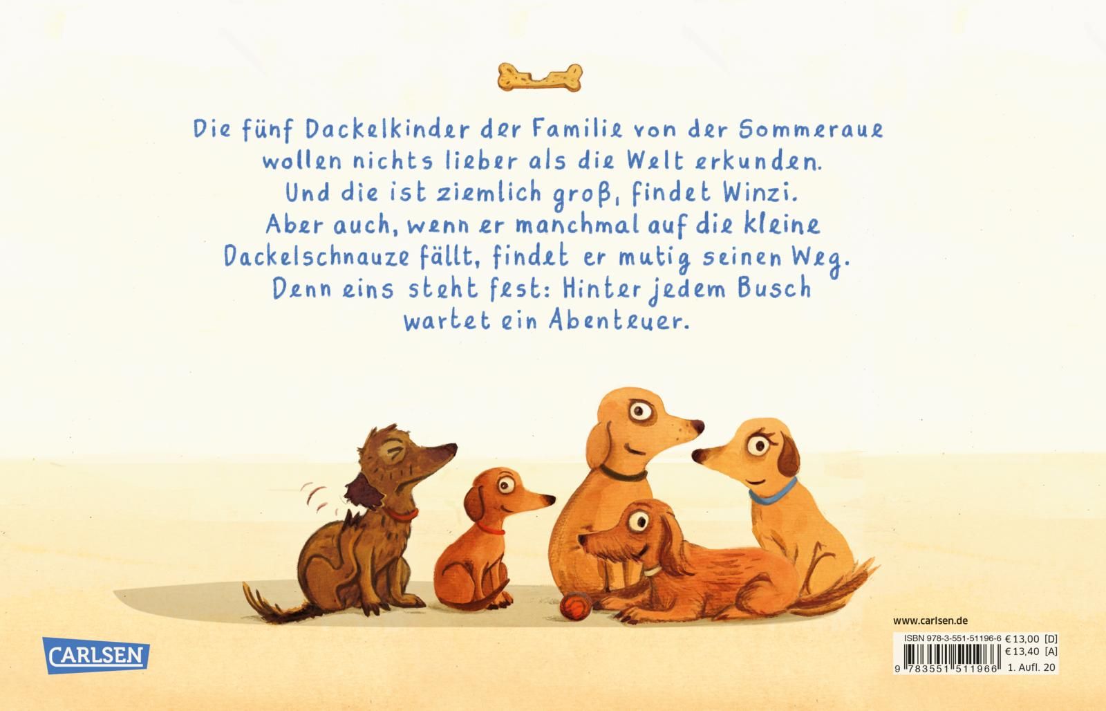 Die Dackelgeschwister Poldi, Jule, Max und Gerda wachsen schnell - nur Winzi bleibt deutlich kleiner. Von ihren Eltern lernen sie alles, was wichtig ist. So entdecken sie die Welt und hecken dabei gemeinsam jede Menge Unfug aus. Eines Tages zeigt sich jedoch, dass gerade der Kleinste der Mutigste von ihnen allen ist.