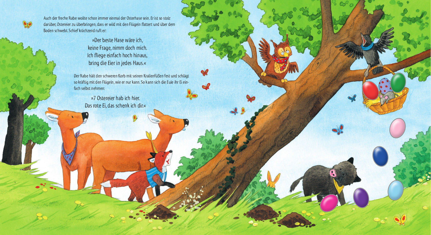 - Mit Spaß und Freude können Kinder so nicht nur der Ostergeschichte lauschen und die bunten Bilder vom Osterhasen und seinen Freunden betrachten, sie können so auch das erste Zählen lernen und die gezeigten Farben.