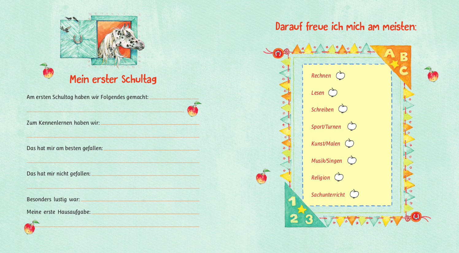 Dieses pferdestarke Erinnerungsalbum bildet ein schönes Andenken an die besonderen Ereignisse und Erfahrungen der ersten Klasse. So bleibt das erste Jahr in der Schule unvergesslich!