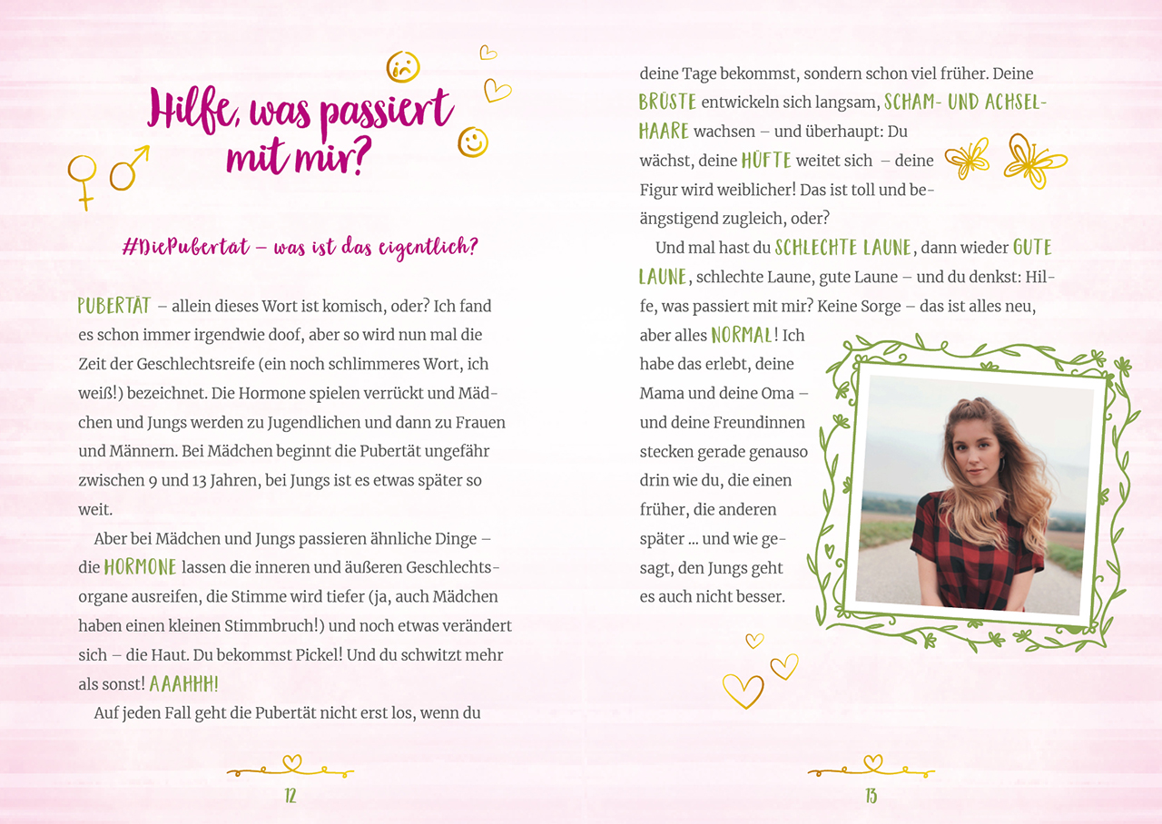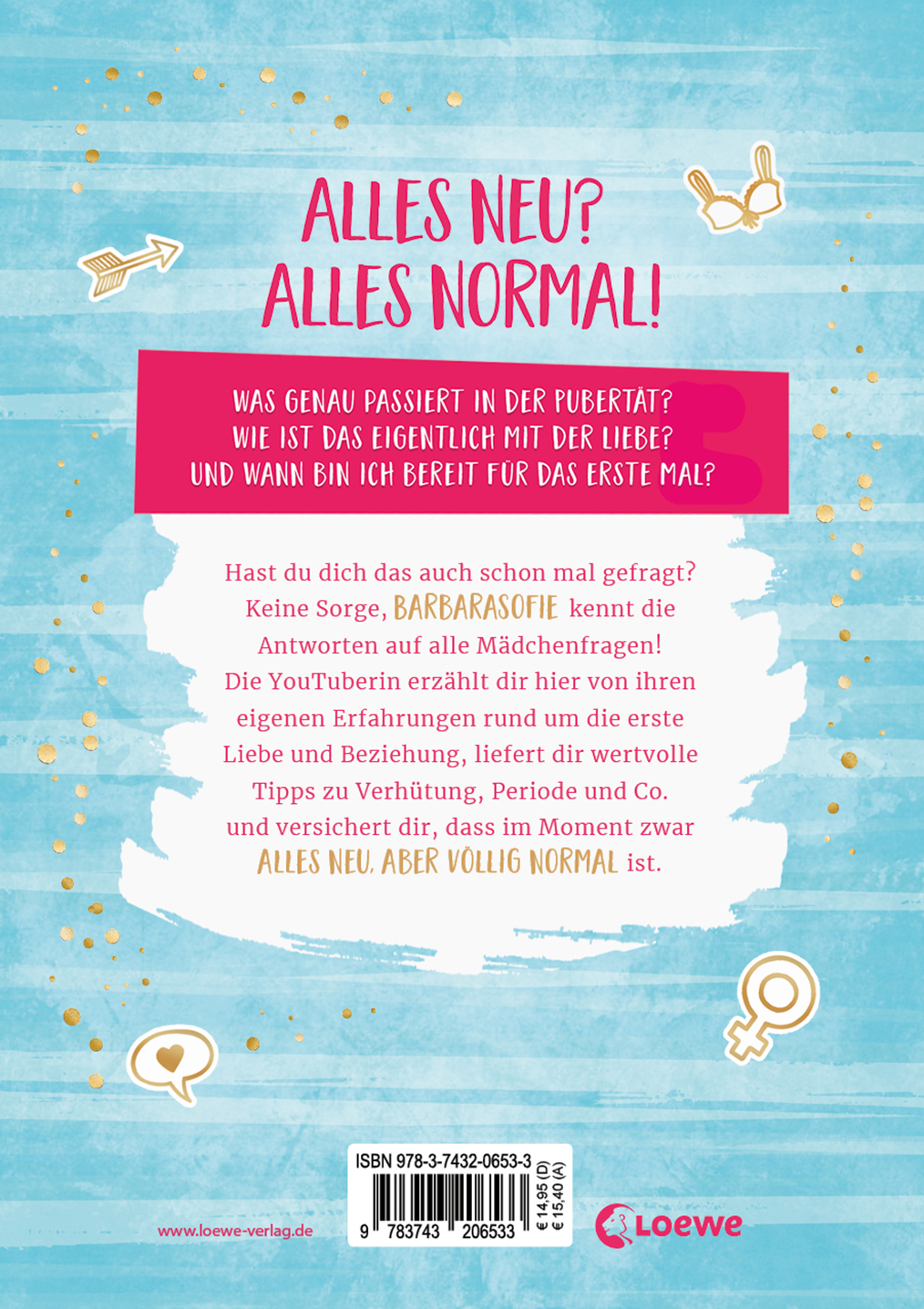 Hast du dich das auch schon mal gefragt? Keine Sorge, BarbaraSofie kennt die Antworten auf alle Mädchenfragen! Die YouTuberin erzählt dir hier von ihren eigenen Erfahrungen rund um die erste Liebe und Beziehung, liefert dir wertvolle Tipps zu Verhütung, Periode und Co. und versichert dir, dass im Moment zwar alles neu, aber völlig normal ist.