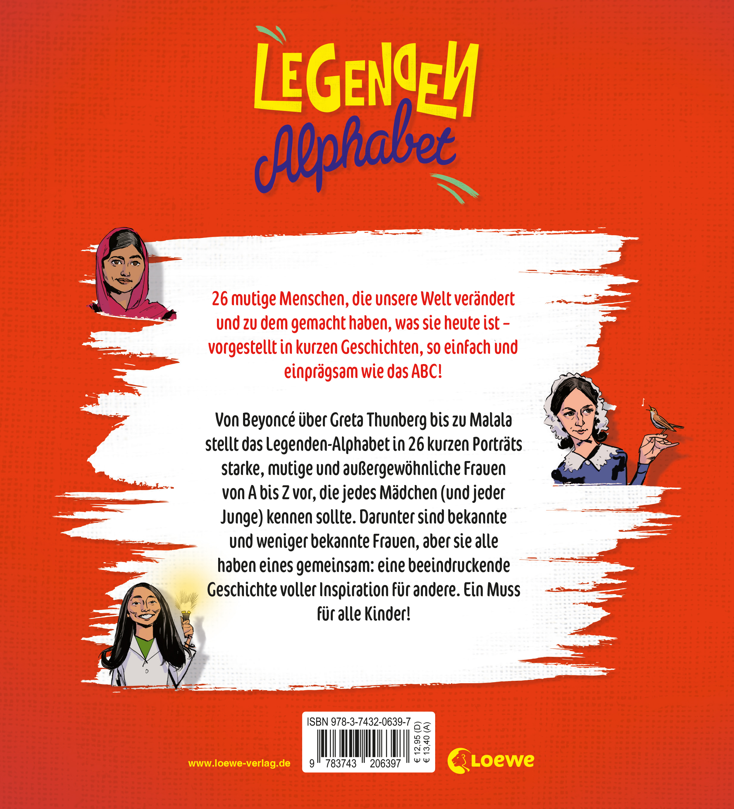Von Beyoncé über Greta Thunberg bis zu Malala stellt das Legenden-Alphabet in 26 kurzen Porträts starke, mutige und außergewöhnliche Frauen von A bis Z vor, die jedes Mädchen (und jeder Junge) kennen sollte. Darunter sind bekannte und weniger bekannte Frauen, aber sie alle haben eines gemeinsam: eine beeindruckende Geschichte voller Inspiration für andere. Ein Muss für alle Kinder!