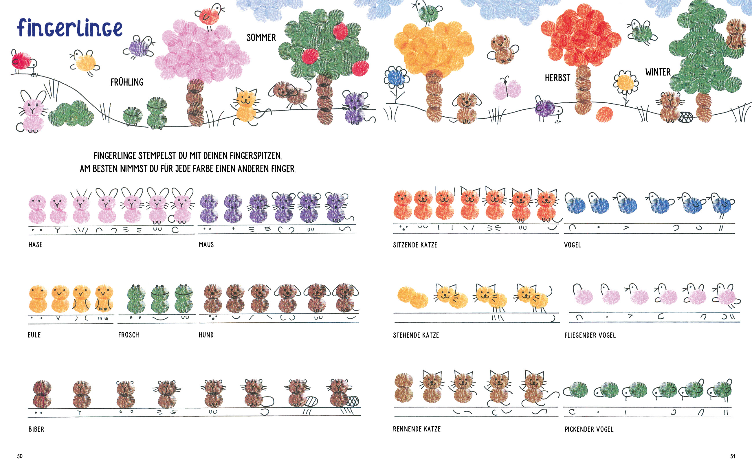 - Kreative Inspiration: Coole Fingerabdruck-Figuren, Bäume, Pflanzen und lustigen Tieren kombinieren und bunte Welten erschaffen