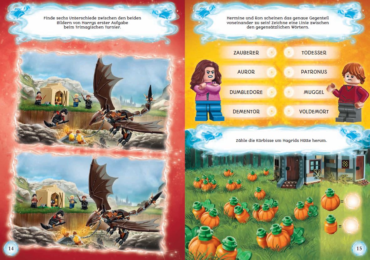 Spannende Rätsel mit Hermine Granger, Harry Potter und Ron Weasley warten auf kleine LEGO® Harry Potter(TM) Fans. Zusammen mit der Minifigur "Hermine Granger" können junge Fans aufregende Missionen erfüllen und knifflige Aufgaben lösen. Liebevolle, handgezeichnete Szenen aus den Harry-Potter-Filmen lassen die Welt von LEGO® Harry Potter(TM) lebendig werden.