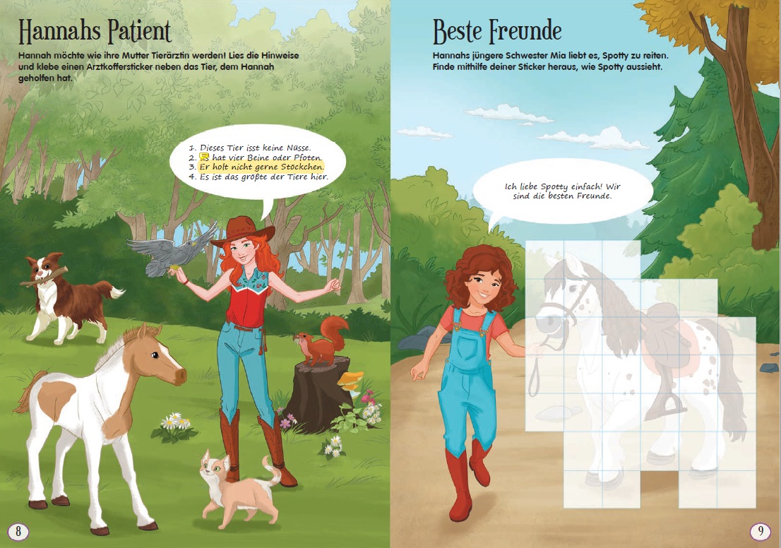Stickerspaß für Horse Club-FansRätsel lösen mit über 500 StickernMit diesem liebevoll gestalteten Stickerbuch mit Szenen aus Lakeside können Pferdefans die spannende Welt des Horse Club mitgestalten und diese auch zu sich nach Hause holen. Ob auf der Koppel, in den Ställen von Lakeside, im Cups & Saddles Reitercafé und dem geheimen Treffpunkt der vier Mädchen, dem alten Wohnwagen - überall darf geklebt und dekoriert werden.Mit dabei sind über 500 Sticker, die auch mehrfach verwendet werden können. Spannende Stickermissionen und knifflige Rätsel mit Hannah, Lisa, Sofia und Sarah runden das Stickerbuch für wissbegierige Pferdefans ab sechs Jahren ab. © Schleich 2020