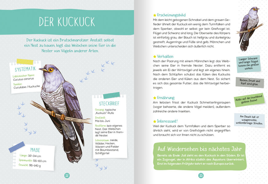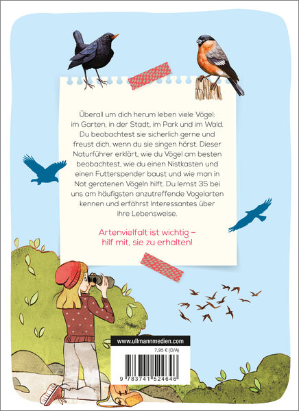 Überall um dich herum leben viele Vögel: im Garten, in der Stadt, im Park und im Wald.Du beobachtest sie sicherlich gerne und freust dich, wenn du sie singen hörst. Dieser Naturführer erklärt, wie du Vögel am besten beobachtest, wie du einen Nistkasten und einen Futterspender baust und wie man in Not geratenen Vögeln hilft. Du lernst 35 bei uns am häufigsten anzutreffende Vogelarten kennen und erfährst Interessantes über ihre Lebensweise.Artenvielfalt ist wichtig - hilf mit, sie zu erhalten!