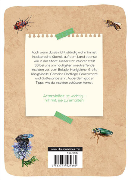 Auch wenn du sie nicht ständig wahrnimmst: Insekten sind überall, auf dem Land ebensowie in der Stadt. Dieser Naturführer stellt 36 bei uns am häufigsten anzutreffendeInsekten vor, zum Beispiel Honigbiene, Große Königslibelle, Gemeine Florfliege, Feuerwanzeund Gottesanbeterin. Außerdem gibt er Tipps, wie du Insekten schützen kannst.Artenvielfalt ist wichtig - hilf mit, sie zu erhalten!Welcher Käfer ist das auf dem Blatt? Welcher Vogel ruft da im Gebüsch? Kann man diese Pflanze essen? Wer sich für die Natur interessiert, hat viele Fragen. Die neue Reihe "Mein Naturführer" bietet einen ersten Einstieg für alle, die sich dem Buch der Natur mit offenen Augen und Ohren nähern wollen. Einführung und Bestimmungsbuch zugleich, stellt jeder Band eine Auswahl der maßgeblichsten Tier- und Pflanzenarten vor, hilft, sie zuverlässig bestimmen zu können, zu verstehen, was sie zum Leben brauchen und was wir alle dafür tun können, um sie zu schützen und ihren Lebensraum zu bewahren. Die ideale Reihe für aufgeweckte Kids, die mehr über die Natur wissen wollen, die uns umgibt.
