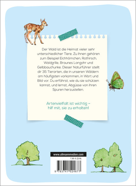 Der Wald ist die Heimat vieler sehr unterschiedlicher Tiere. Zu ihnen gehören zum Beispiel Eichhörnchen, Rothirsch, Waldgrille, Braunes Langohr und Gelbbauchunke. Dieser Naturführer stellt dir 35 Tierarten, die in unseren Wäldern am häufigsten vorkommen, in Wort und Bild vor. Du erfährst, wie du sie schützen kannst, und lernst, Abgüsse von ihren Spuren herzustellen.Artenvielfalt ist wichtig - hilf mit, sie zu erhalten!Welcher Käfer ist das auf dem Blatt? Welcher Vogel ruft da im Gebüsch? Kann man diese Pflanze essen? Wer sich für die Natur interessiert, hat viele Fragen. Die neue Reihe "Mein Naturführer" bietet einen ersten Einstieg für alle, die sich dem Buch der Natur mit offenen Augen und Ohren nähern wollen. Einführung und Bestimmungsbuch zugleich, stellt jeder Band eine Auswahl der maßgeblichsten Tier- und Pflanzenarten vor, hilft, sie zuverlässig bestimmen zu können, zu verstehen, was sie zum Leben brauchen und was wir alle dafür tun können, um sie zu schützen und ihren Lebensraum zu bewahren. Die ideale Reihe für aufgeweckte Kids, die mehr über die Natur