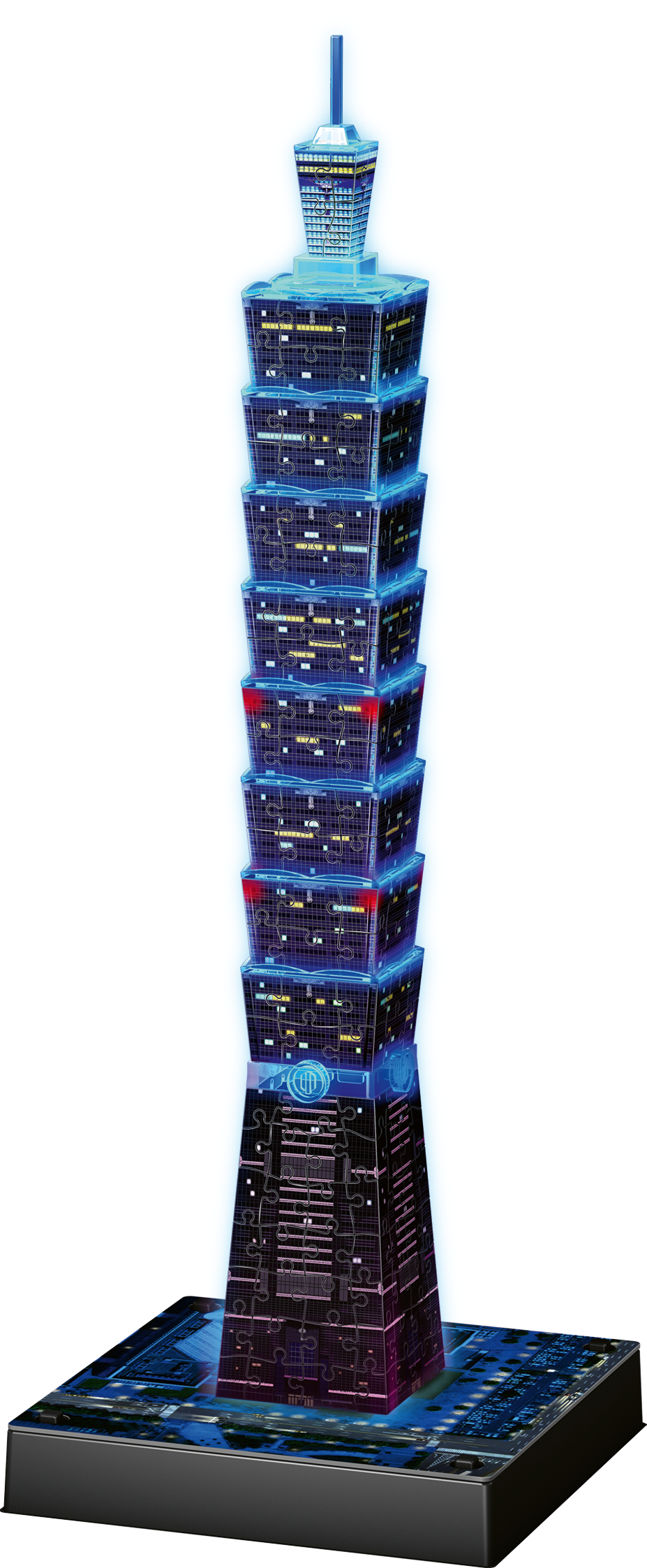 Taipei 101 bei NachtDer spektakuläre Wolkenkratzer zum Selbstpuzzeln für die eigenen vier Wände. Es ist faszinierend das Gebäude als 3D Puzzle von Ravensburger in die Höhe zu bauen. Das Ergebnis beeindruckt fast so sehr wie das Original.Die nummerierten Kunststoff-Puzzleteile passen dank EasyClick Technology perfekt ineinander und ermöglichen stabiles Puzzeln, ganz ohne Kleben. Die Nummerierung auf der Rückseite der Teile erleichtert das Vorsortieren und ermöglicht das Puzzeln nach Zahlen.