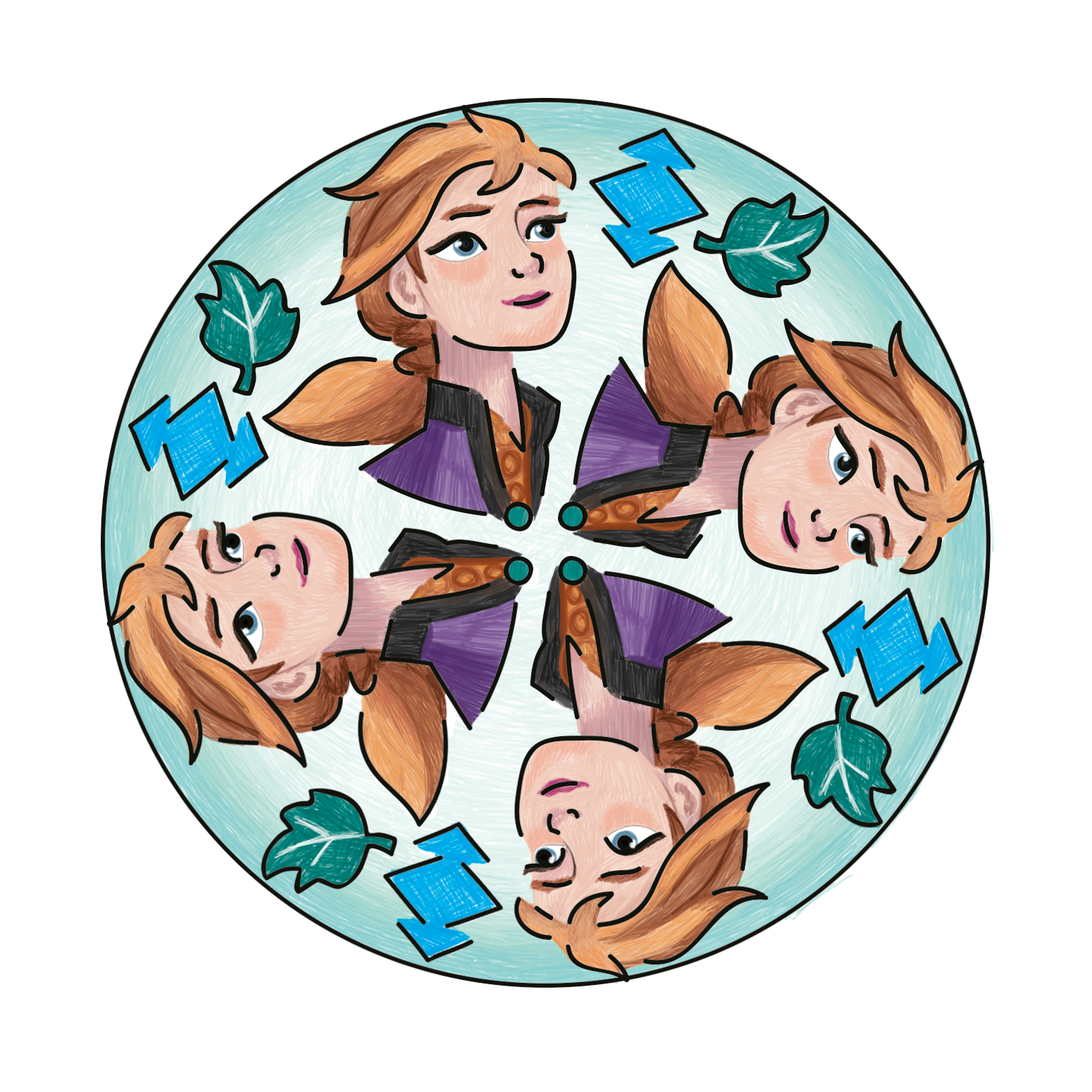 Ravensburger Mandala Designer Frozen 2 29025, Anna und Elsa zeichen lernen für Kinder ab 6 Jahren, Set mit Mandala-Schablone für farbenfrohe Mandalas