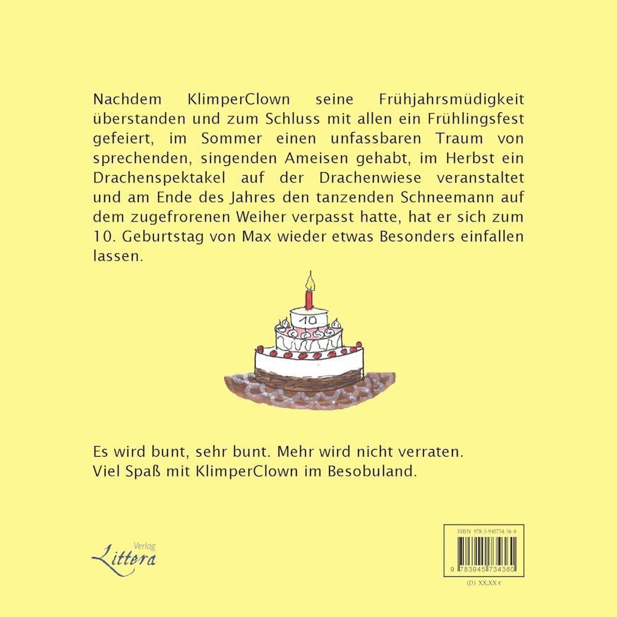 Nachdem KlimperClown seine Frühjahrsmüdigkeit überstanden und zum Schluss mit allen ein Frühlingsfest gefeiert, im Sommer einen unfassbaren Traum von sprechenden, singenden Ameisen gehabt, im Herbst ein Drachenspektakel auf der Drachenwiese veranstaltet und am Ende des Jahres den tanzenden Schneemann auf dem zugefrorenen Weiher verpasst hatte, hat er sich zum 10. Geburtstag von Max wieder etwas Besonders einfallen lassen.