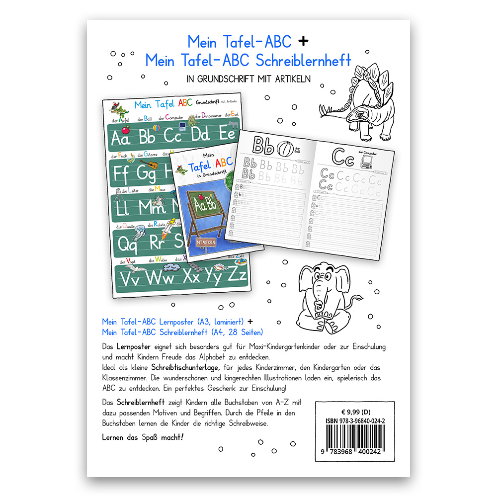 - Mein Tafel-ABC in Grundschrift mit Artikeln DINA 3 laminiert + Schreiblernheft DINA 4