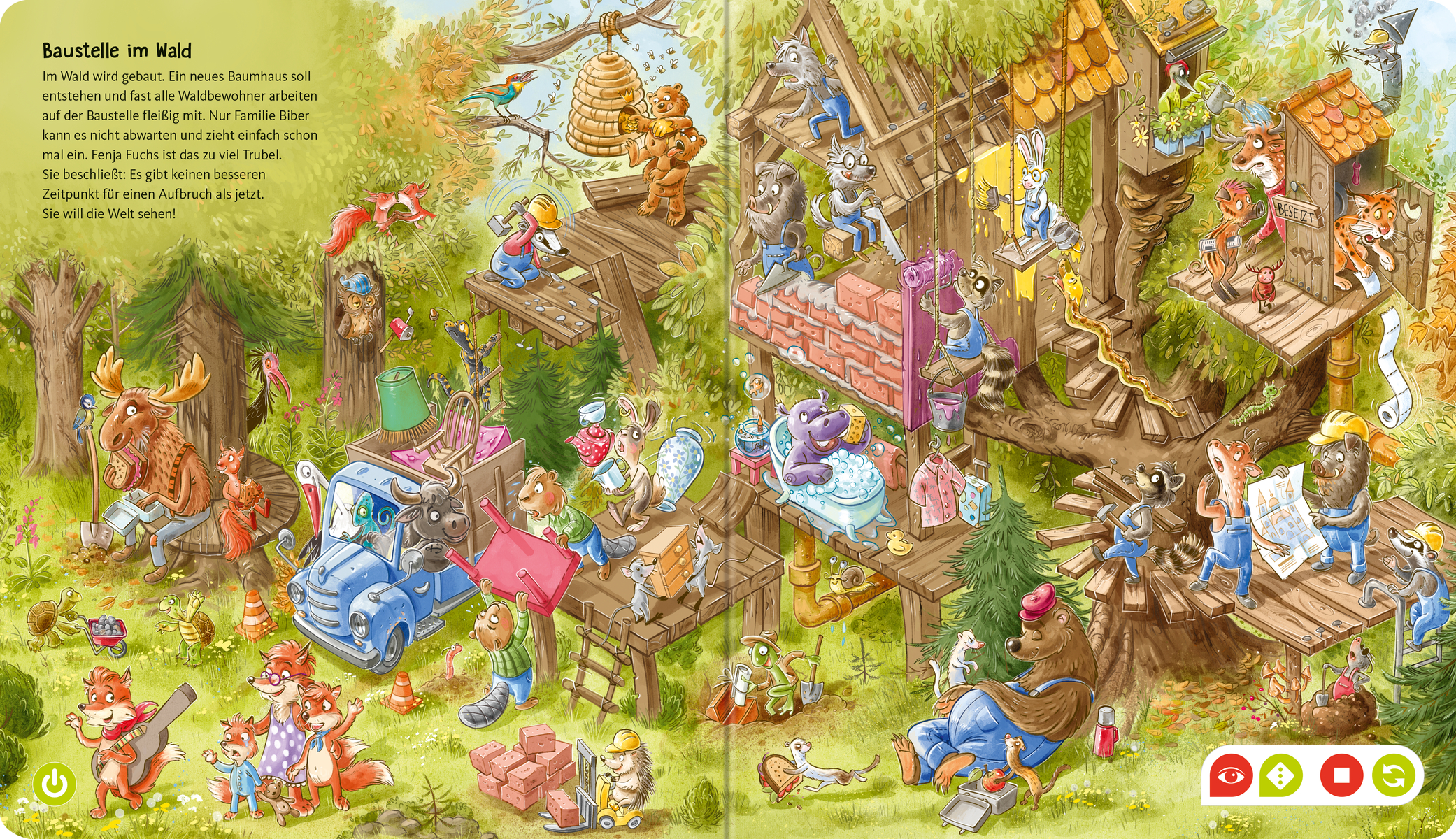 Zahlreiche tiptoi-Spiele motivieren zum genauen Hinsehen, Zuhören und Wiederentdecken witziger Szenen und bekannter Geräusche.