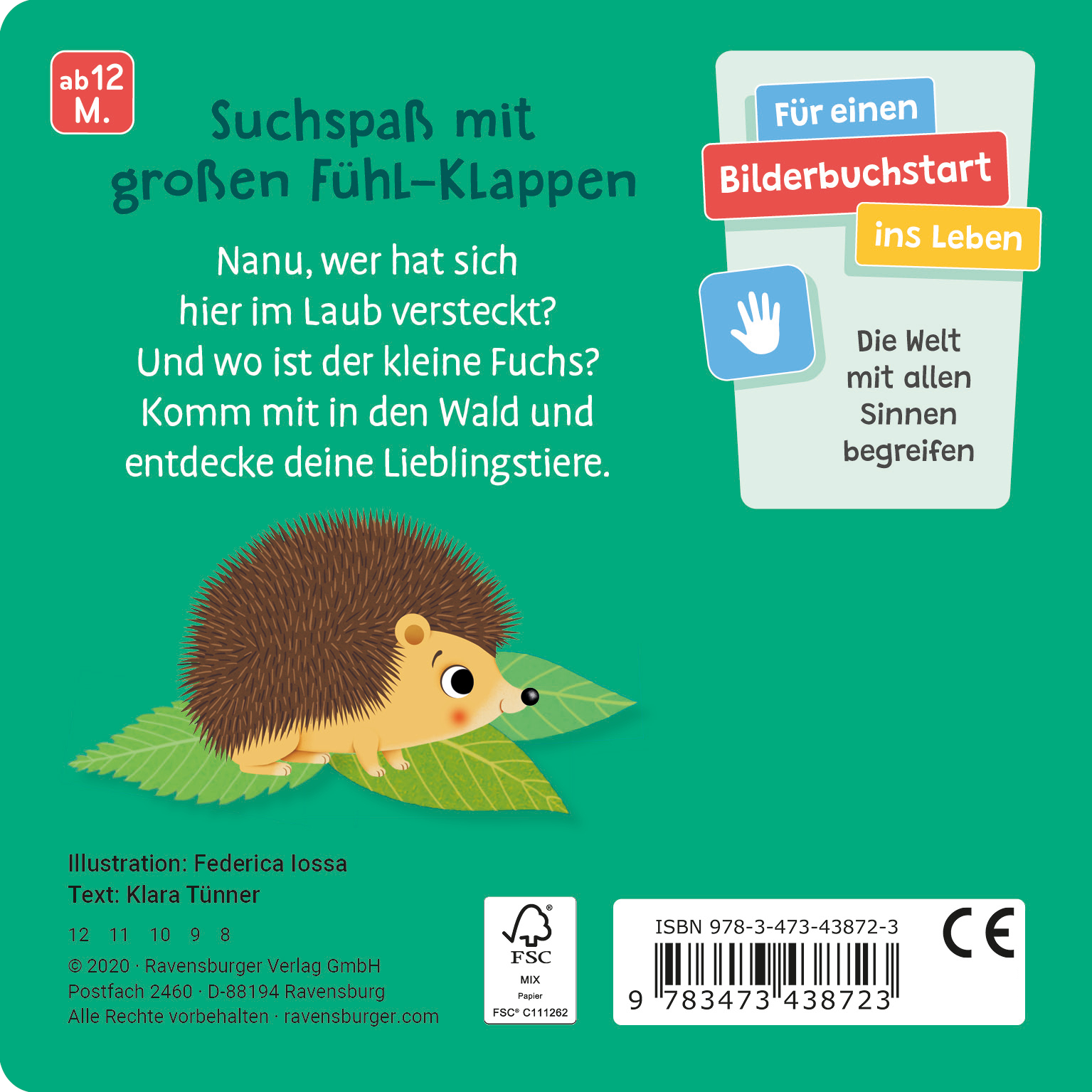 Wo hat sich der kleine Fuchs versteckt? Stapft er mit dem Bären durch den Wald? Oder hat er sich vielleicht im Gebüsch versteckt?Dieses allererste Stoff-Klappenbuch lädt Kinder ab 12 Monaten ein, es herauszufinden!Auf jeder der fünf Doppelseiten gibt es eine große Klappe aus Stoff, die zum Greifen und Entdecken anregt. Schon die Allerkleinsten öffnen diese Klappen spielend leicht - stabile Materialien und das handliche Buchformat machen es möglich. Dahinter verstecken sich allerlei spannende Waldtiere: Hinterm Gebüsch sitzt das Reh, das Eichhörnchen spielt ganz oben im Baum. Der Igel versteckt sich im Laub und nachts fliegt die Eule zwischen den Tannenspitzen umher. Und der kleine Fuchs? Der ist ganz nah bei seiner Mama.Dieses Pappbilderbuch ist auf die Bedürfnisse kleiner Kinderhände abgestimmt und hält auch energischen Griffen stand. So kann sich die Feinmotorik der Kinder Schritt für Schritt entwickeln.Dank der kompakten Maße passt das Buch zudem in jede Hand- und Wickeltasche, ideal für unterwegs!