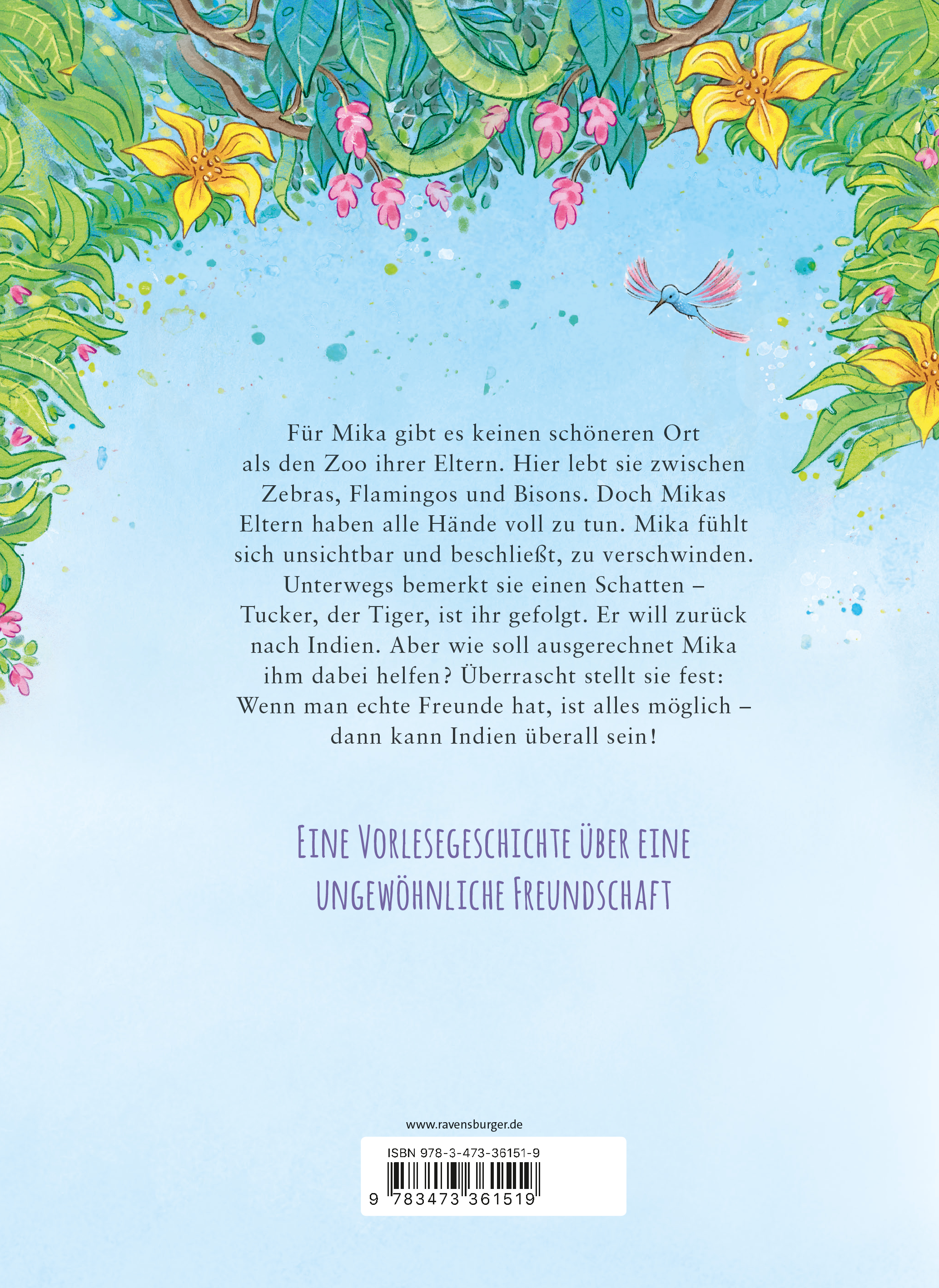 Mika fühlt sich unsichtbar und beschließt, zu verschwinden. Unterwegs bemerkt sie einen Schatten – Tucker, der Tiger, ist ihr gefolgt. Er will zurück nach Indien, aber wie soll ausgerechnet Mika ihm dabei helfen? Überrascht stellt sie fest: Wenn man echte Freunde hat, ist alles möglich - dann kann Indien überall sein!