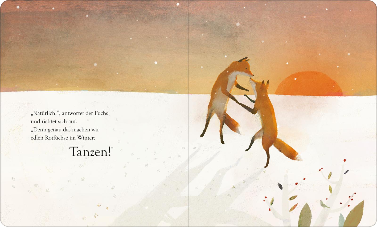 Immer mehr Schneeflocken fallen und die Welt um den Fuchs wird ganz still. Da kommt plötzlich ein anderer Fuchs daher und der weiß, was Füchse im Winter machen ... tanzen!