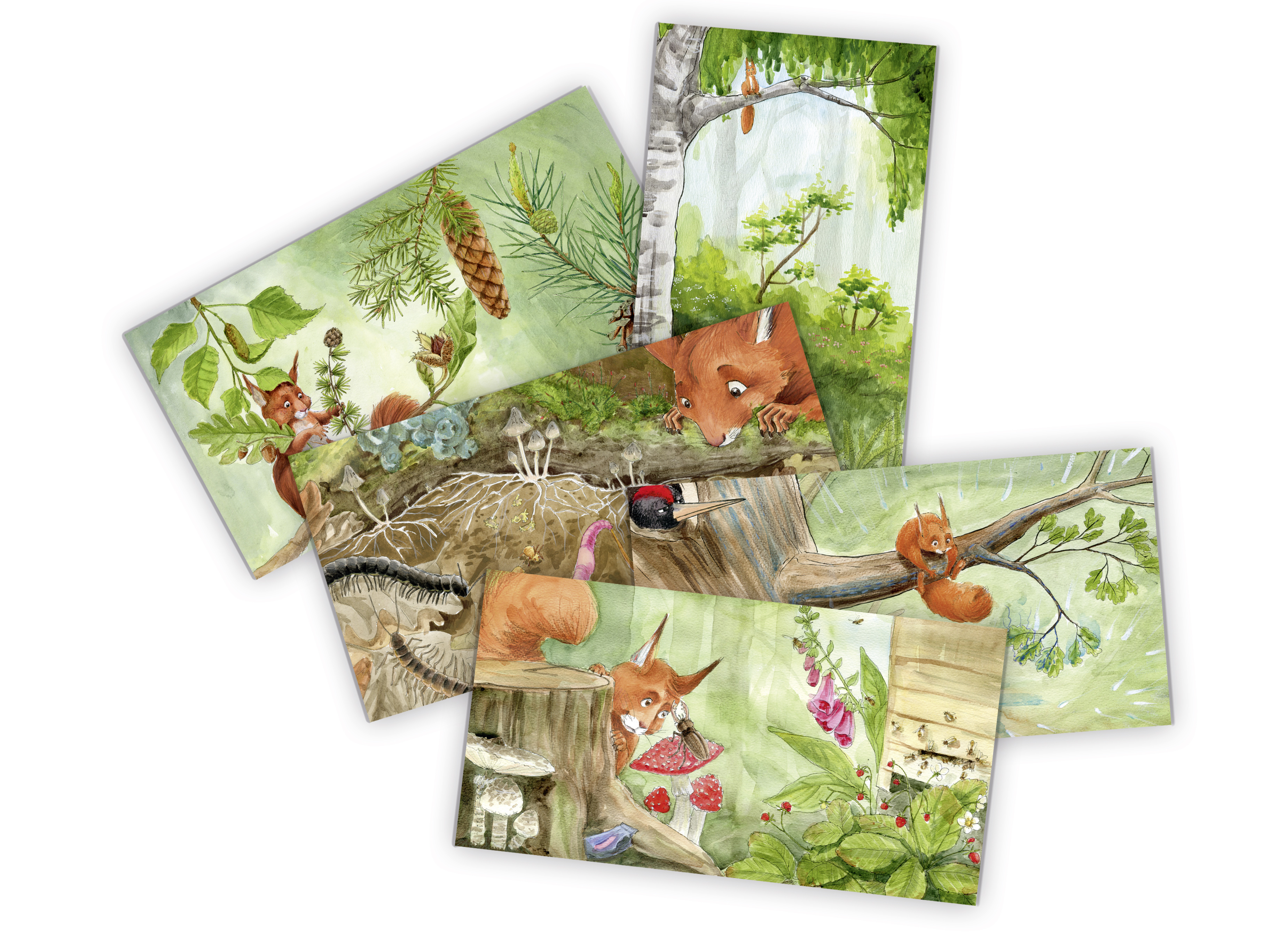 Es führt dich durch seine Heimat, den Wald, der zahlreichen Tier- und Pflanzenarten Lebensraum, Nahrung und Schutz bietet.