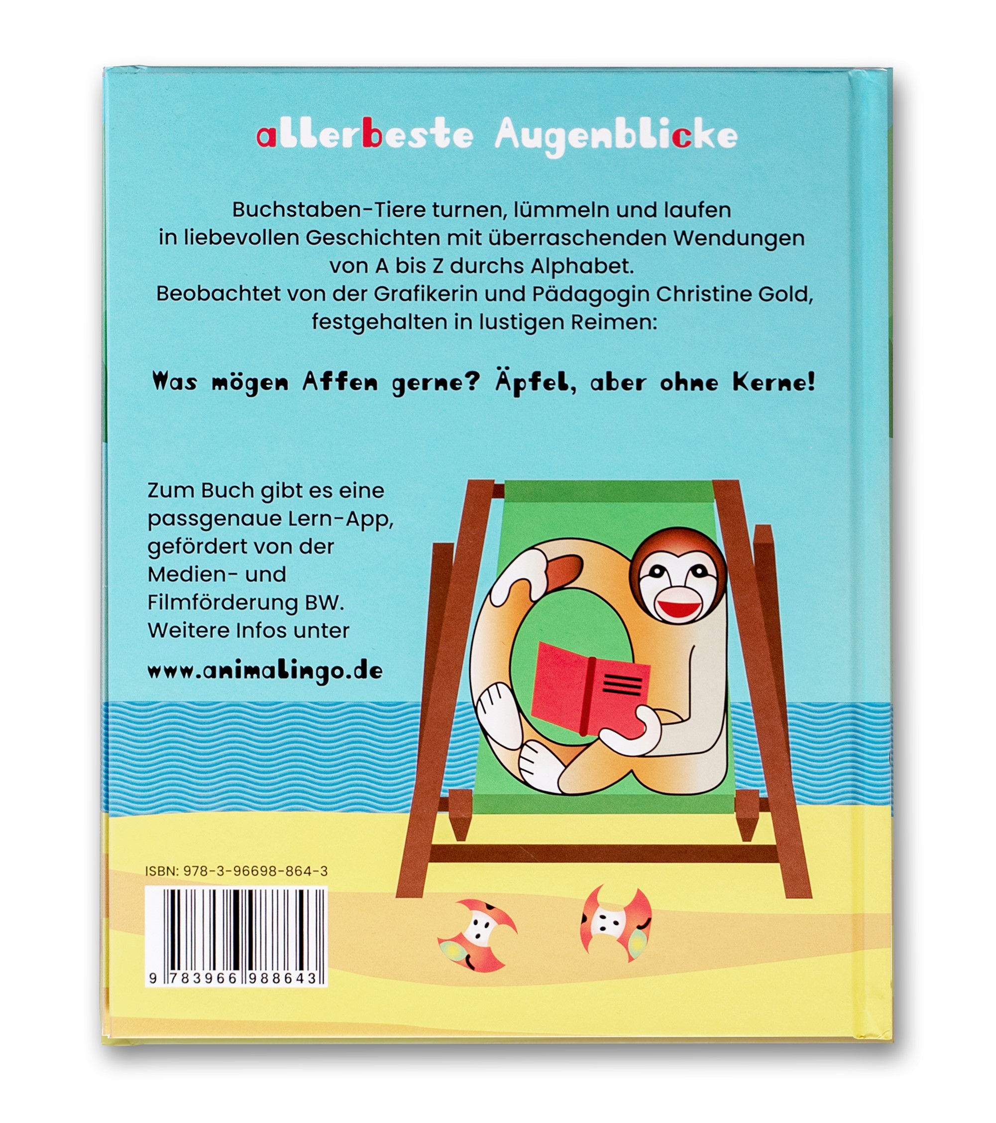 Christine Gold hat Kunst studiert, ist gelernte Ergotherapeutin, Montessori-Pädagogin, und Mutter von drei Kindern. Nebenbei arbeitet sie freiberuflich im Limesmuseum in Aalen. Jetzt ist sie selbstständig und gestaltet Produkte für Kinder. In Wirklichkeit will sie die Welt der Kinder etwas besser machen oder vielmehr so lassen wie sie ist, nämlich lustig und leicht. An einem schönen Nachmittag sitzt Christine Gold über einem Erstlingslesebuch und übt mit ihrer Tochter Helena das Lesen. Neurologisch ist Lesen lernen extrem anspruchsvoll und anfangs weder lustig noch leicht. Neben den 30 Buchstaben, die aneinandergereiht werden müssen, sind da auch noch andere Stolperfallen, wie das sp, st, ei, eu, sch, ch, das Dehnungs-h und das ie. Christine Gold entschließt sich kurzerhand das Buch "allerbeste Augenblicke" ohne diese Stolperfallen zu schreiben. Nach jahrelanger Arbeit ist die Marke animalingo entwickelt, humorvoll und leicht.