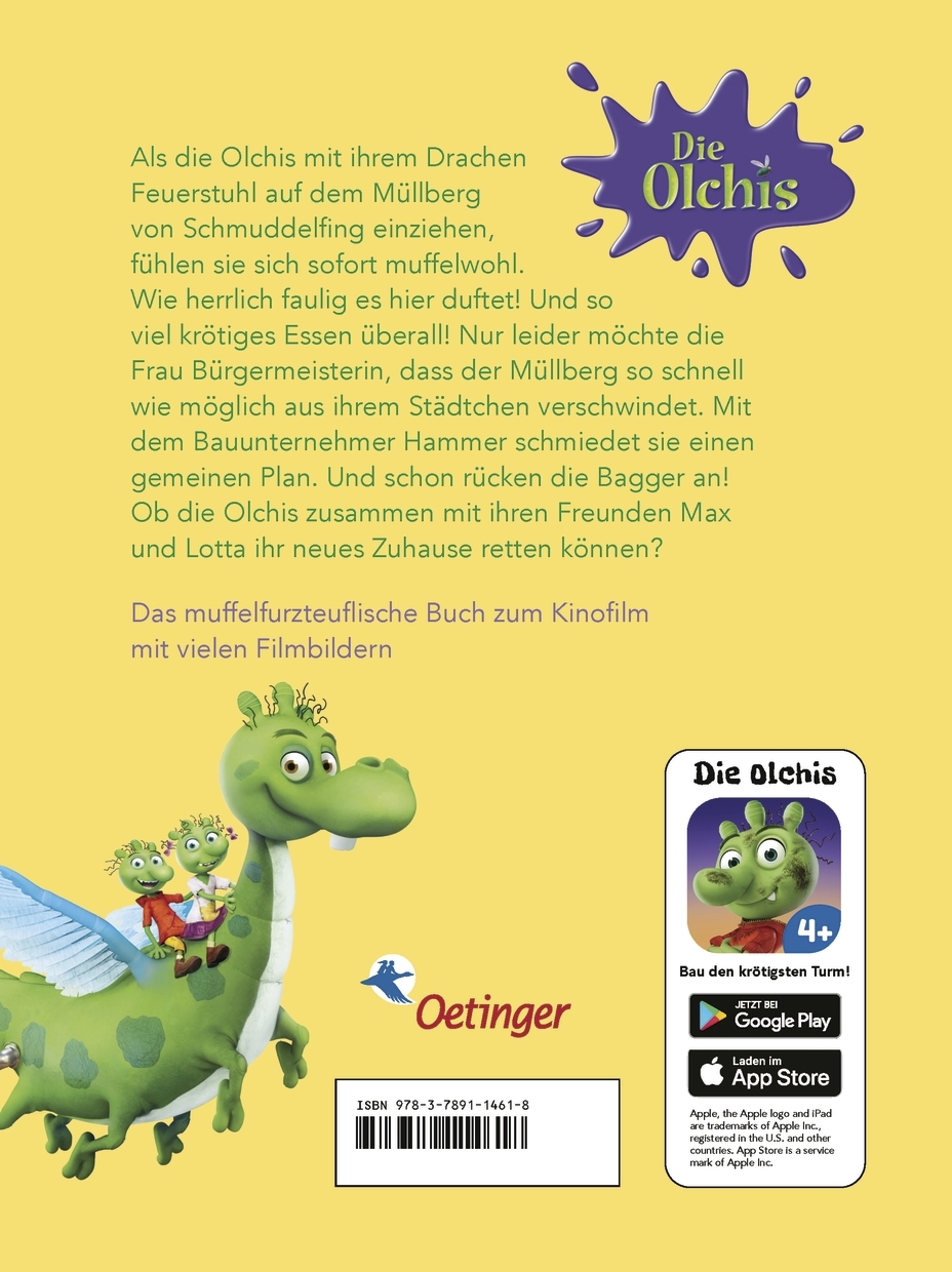 Das muffelfurzteuflische Buch zum großen Olchi-Kinofilm! Als die Olchis mit ihrem Drachen Feuerstuhl auf dem Müllberg von Schmuddelfing einziehen, fühlen sie sich sofort muffelwohl. Wie herrlich faulig es hier duftet! Und so viel krötiges Essen überall! Nur leider möchte die Frau Bürgermeister, dass der Müllberg so schnell wie möglich aus ihrem Städtchen verschwindet. Mit dem Bauunternehmer Hammer schmiedet sie einen gemeinen Plan. Und schon rücken die Bagger an! Ob die Olchis zusammen mit ihren Freunden Max und Lotta ihr neues Zuhause retten können?