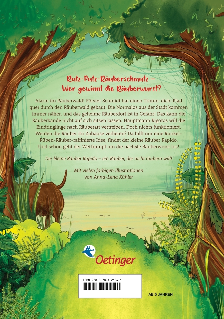 Rutz-Putz-Räuberschmutz! Bei Band zwei von Nina Wegers Räuber Rapido, herrscht Alarm im Räuberwald! Menschen in Trainingsanzügen joggen durchs Unterholz! Förster Schmidt hat nämlich einen Trimm-dich-Pfad gebaut. Das kann die Räuberbande nicht auf sich sitzen lassen. Was tun? Da hilft nur List und Tücke, findet der kleine Räuber Rapido.
