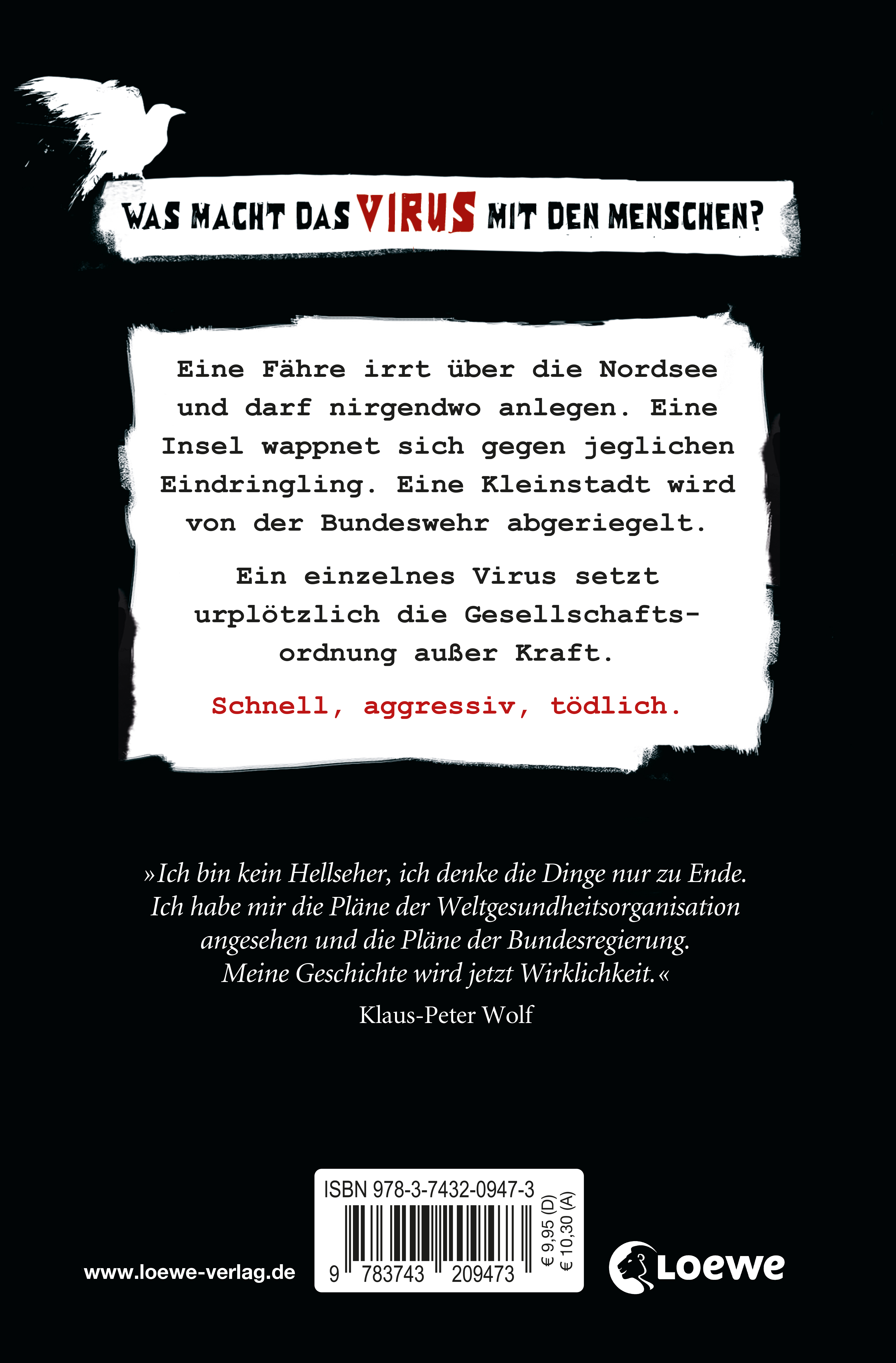 Eine Fähre irrt über die Nordsee und darf nirgendwo anlegen. An Bord befindet sich eine tödliche Gefahr. Sie könnte von jedem ausgehen. Auf einer beliebten Urlaubsinsel formiert sich eine Bürgerwehr: Kein Neuankömmling soll die Insel mehr betreten. Dabei ist die Bedrohung schon längst dort. Die Bundeswehr riegelt eine Kleinstadt an der Küste ab. Niemand darf mehr ins Sperrgebiet. Und niemand darf mehr hinaus. Aber ob das noch etwas nützt? Es geschieht etwas völlig Unberechenbares, das jegliche Gesellschaftsordnung außer Kraft setzt. Wann kommt es zu uns?