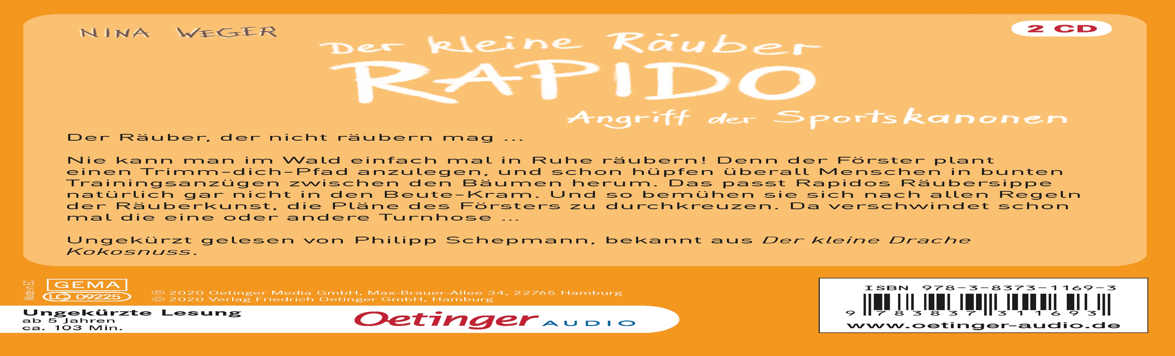 lt;p>Der Räuber, der nicht räubern mag ... Nie kann man im Wald einfach mal in Ruhe räubern! Denn der Förster plant einen Trimm-dich-Pfad anzulegen, und schon hüpfen überall Menschen in bunten Trainingsanzügen zwischen den Bäumen herum. Das passt Rapidos Räubersippe natürlich gar nicht in den Beute-Kram. Und so bemühen sie sich nach allen Regeln der Räuberkunst, die Pläne des Försters zu durchkreuzen. Da verschwindet schon mal die eine oder andere Turnhose ...
