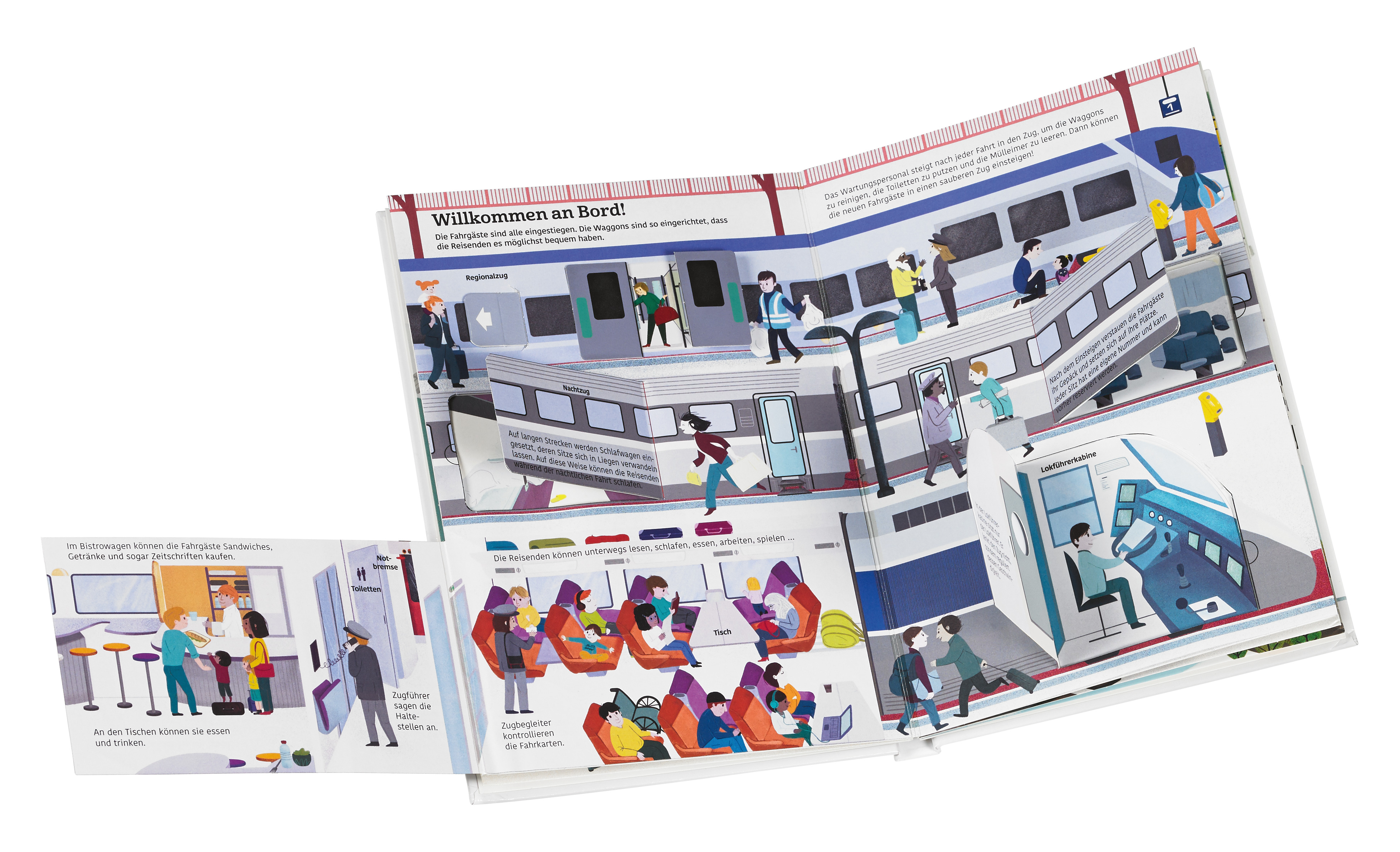 Dieses großformatige Sachbuch mit 18 Spielelementen und Klappen lässt kleine Leser die Welt der Eisenbahn entdecken.