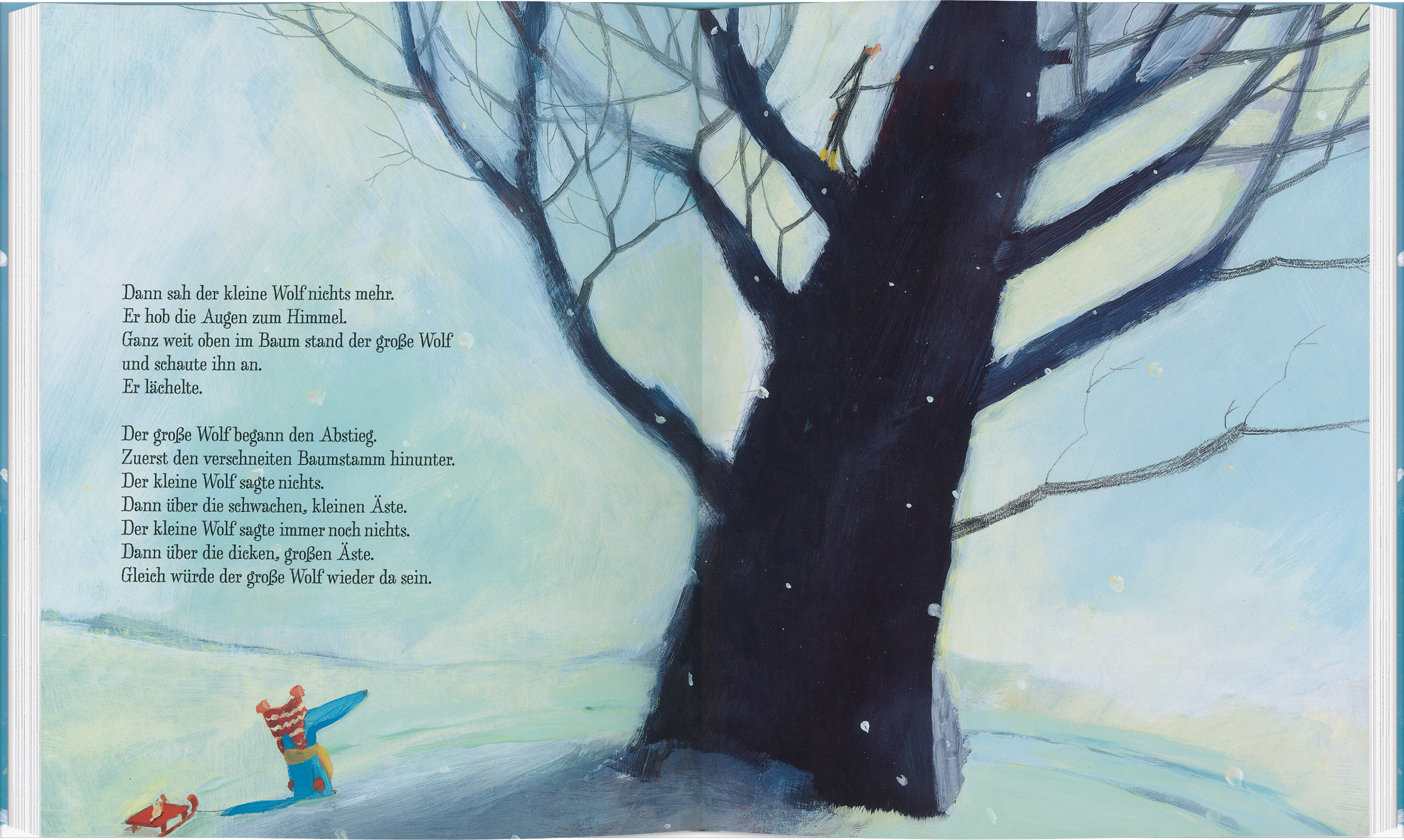 Der große Wolf riskiert viel, um dem kleinen Wolf einen Herzenswunsch zu erfüllen - eine poetische Bilderbuchgeschichte für Große und Kleine.