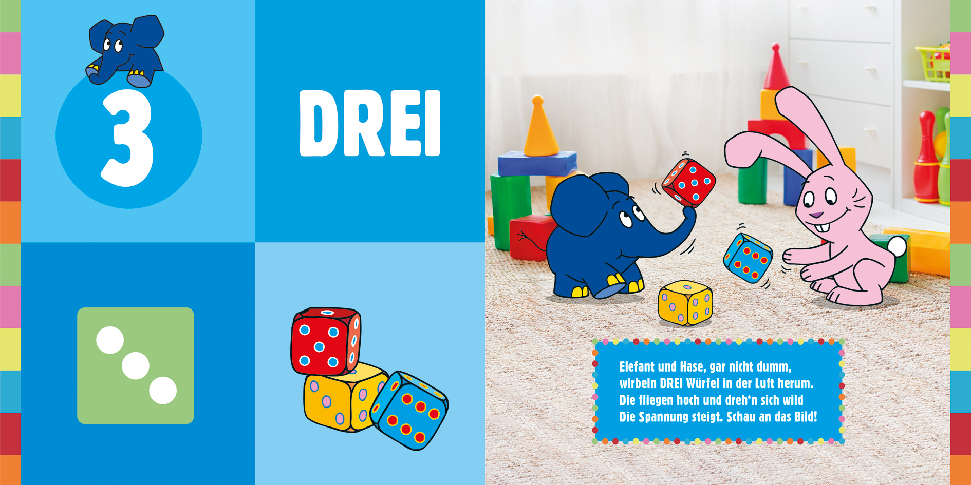 | Schlagworte | Elefant • Entdecken • Hase • Lernen • Spielen • Spielerisch • Zahlen |