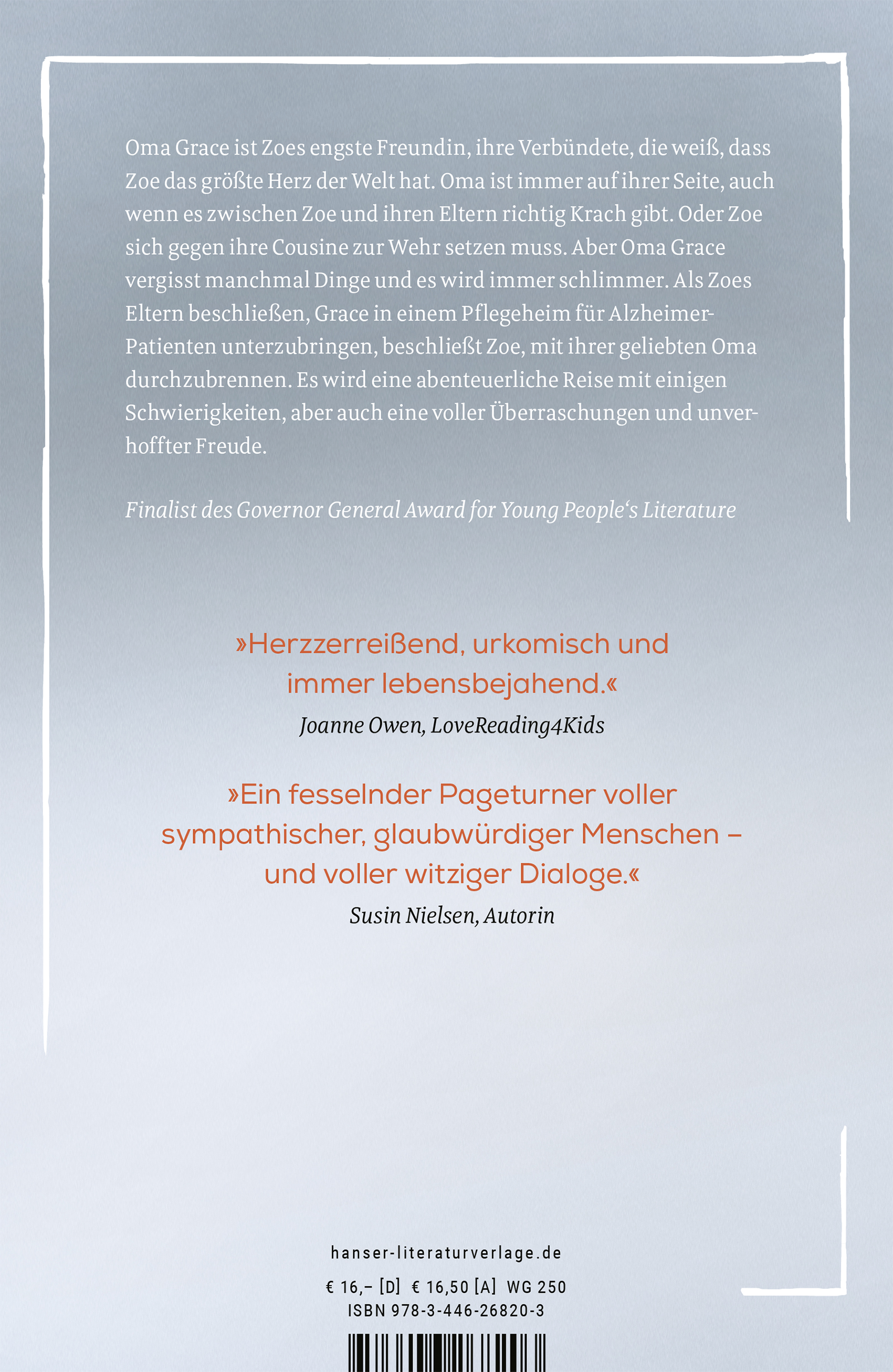 Oma Grace ist Zoes engste Freundin, ihre Verbündete, die weiß, dass Zoe das größte Herz der Welt hat. Oma ist immer auf ihrer Seite, auch wenn Zoe ihre Eltern mal wieder wütend anzischt, weil sie anderer Meinung ist. Und erst recht, wenn Zoe sich gegen ihre Kusine zur Wehr setzen muss oder in der Schule gemobbt wird. Aber Oma Grace vergisst manchmal Dinge, und es wird immer schlimmer. Als Zoes Eltern beschließen, Grace zukünftig in einem Pflegeheim für Alzheimer-Patienten unterzubringen, beschließt Zoe, mit ihrer geliebten Oma durchzubrennen. Gemeinsam wollen sie nach Zoes verschollenem Onkel suchen. Es wird eine abenteuerliche Reise mit einigen Schwierigkeiten, aber auch eine voller Überraschungen und unverhoffter Freude.