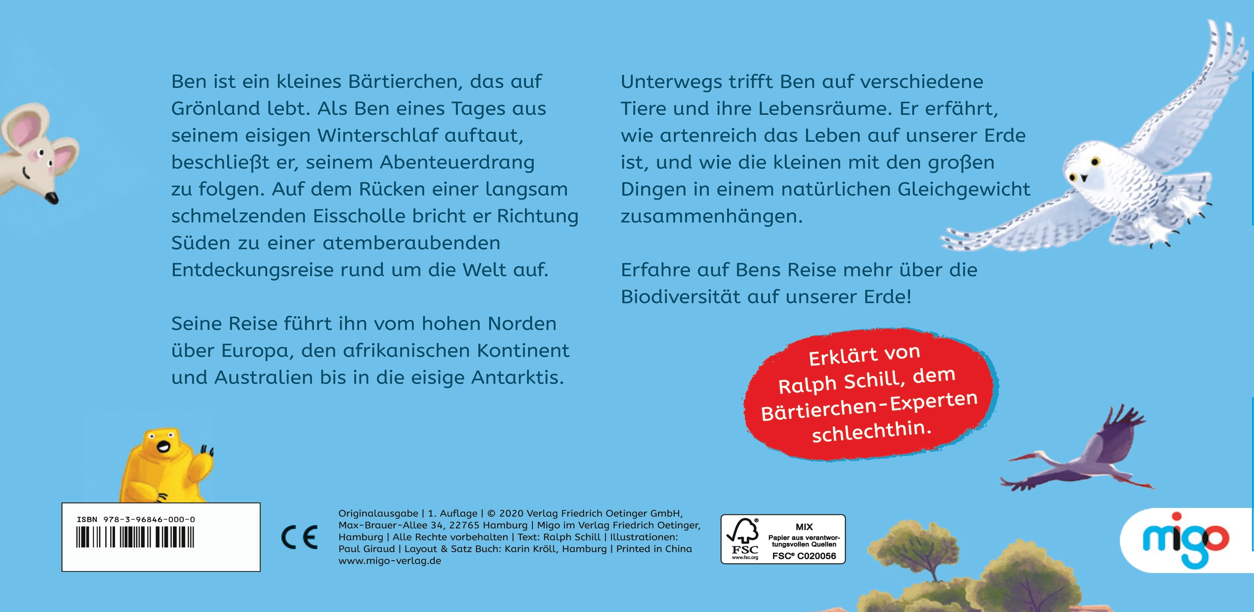 | Schlagworte | Antarktis • Arktis • Artenvielfalt der Erde • Bärtierchen • Biodiversität • Biodiversität für Kinder • Fridays For Future • Grönland • Kinderbuch ab 6 • Klimawandel • Leben in der Antarktis • Leben in der Arktis • Lebensraum • Lebensräume für Tiere • Natürliche Vielfalt • Nordpol und Südpol • sprechende Tiere • Südpol • Tiere auf Grönland • Tierfreundschaft • Tiergeschichte • Tierischer Held • Tierische Weltreise • Umwelt |