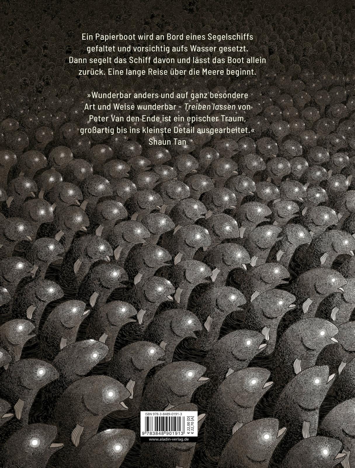 "Wunderbar anders und auf ganz besondere Art und Weise wunderbar - 'Treiben lassen' von Peter Van den Ende ist ein epischer Traum, großartig bis ins kleinste Detail ausgearbeitet." Shaun Tan