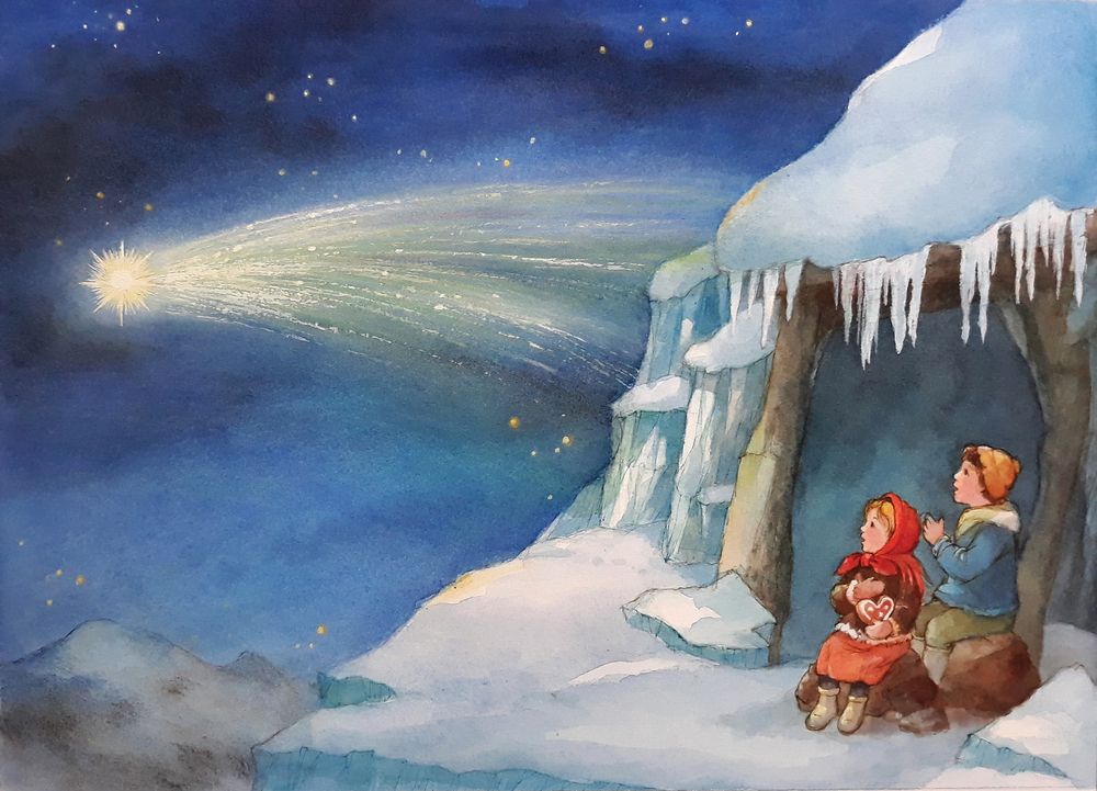 Die berühmte Erzählung "Bergkristall" (erstmals veröffentlicht 1845 als "Der heilige Abend") von Adalbert Stifter gehört zu den Klassikern der Weihnachtsgeschichten.Sie erzählt von den Geschwistern Konrad und Sanna, die ihren Großeltern im Nachbardorf Weihnachtsgaben bringen sollen, aber dabei in einen Schneesturm geraten.Sie müssen über den Pass, der ihr Heimatdorf Gschaid von Millsdorf trennt, in dem ihre Mutter aufwuchs. Sie, die Millsdorferin, und ihre Kinder aber wurden nie vollkommen von den Einwohnern ihrer neuen Heimat akzeptiert, erst die Rettung der Kinder aus dem Hochgebirge nach gemeinsamer Suche ändert dies.Stifter lässt diese Geschichte nicht aus Zufall am heiligen Abend spielen - auch wenn es an jedem anderen Tag, ob früher oder heute stattfinden könnte.Auch wenn diese Erzähltung schon 175 Jahre alt ist: Die Thematik ist immer aktuell.Vorurteile, Skepsis gegenüber Fremden und Gefühle, nicht dazuzugehören ...Am Ende dieser besonderen Bilderbuchgeschichte siegt der Zusammenhalt in schweren Zeiten und die Nächstenliebe zwischen den Menschen, egal welcher Herkunft.