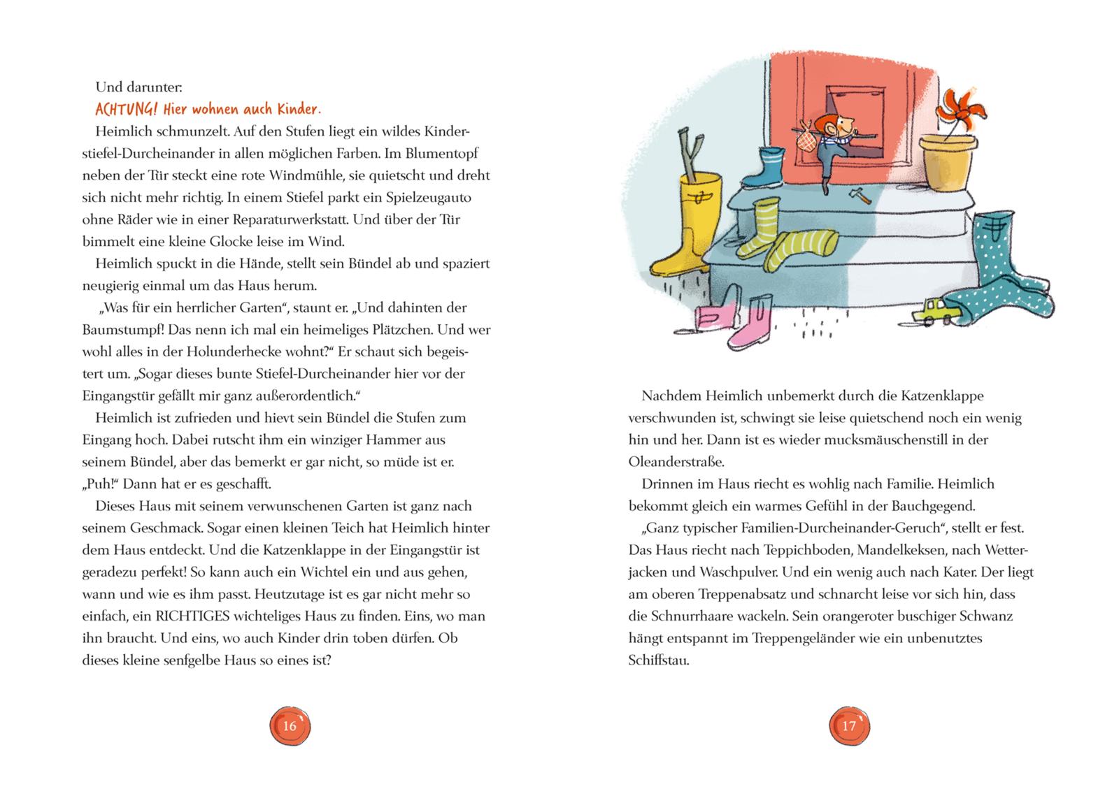 Heimlich ist ein echter Hauswichtel. Nur, wer braucht noch Hauswichtel, wo nichts mehr repariert, sondern alles gleich weggeworfen wird? Niemand! Doch dann trifft Heimlich auf Lotte und die braucht seine Hilfe. Denn in Lottes Familie ist ständig was los: Papas Socken verschwinden, das Küchenradio will nicht mehr, Lottes Friseurtermin läuft anders als geplant und in Mamas Geburtstagskuchen klafft ein riesiges Loch. Im Grunde das ganz normale Familienchaos! Aber zum Glück hat Lotte jetzt ja Heimlich. Und der weiß, was hier zu tun ist. Denn es wäre doch gelacht, wenn ein Hauswichtel wie er hier nicht helfen könnte!
