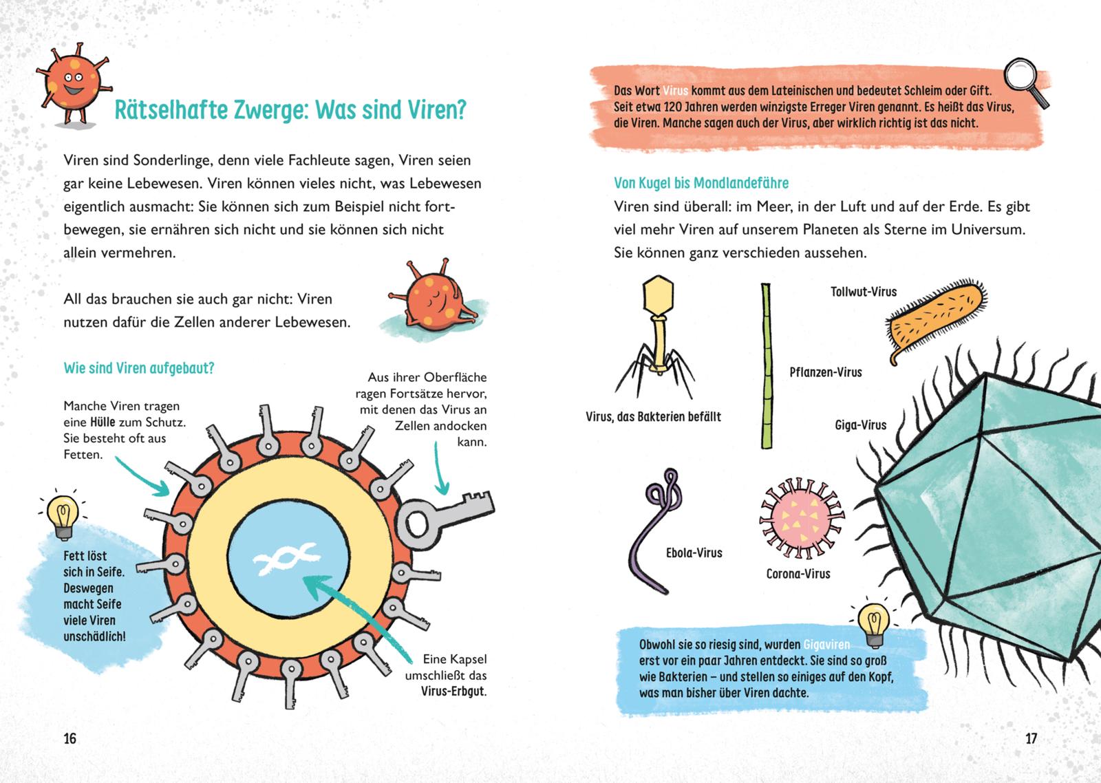 Viren, Ansteckung, Impfung, Immunität sind Begriffe, die uns noch lange begleiten werden. Gerade für Kinder ist es wichtig, zu verstehen, warum manche Viren schädlich, andere aber nützlich sind. Und wie diese winzigen Lebewesen unser Leben beeinflussen und verändern können.