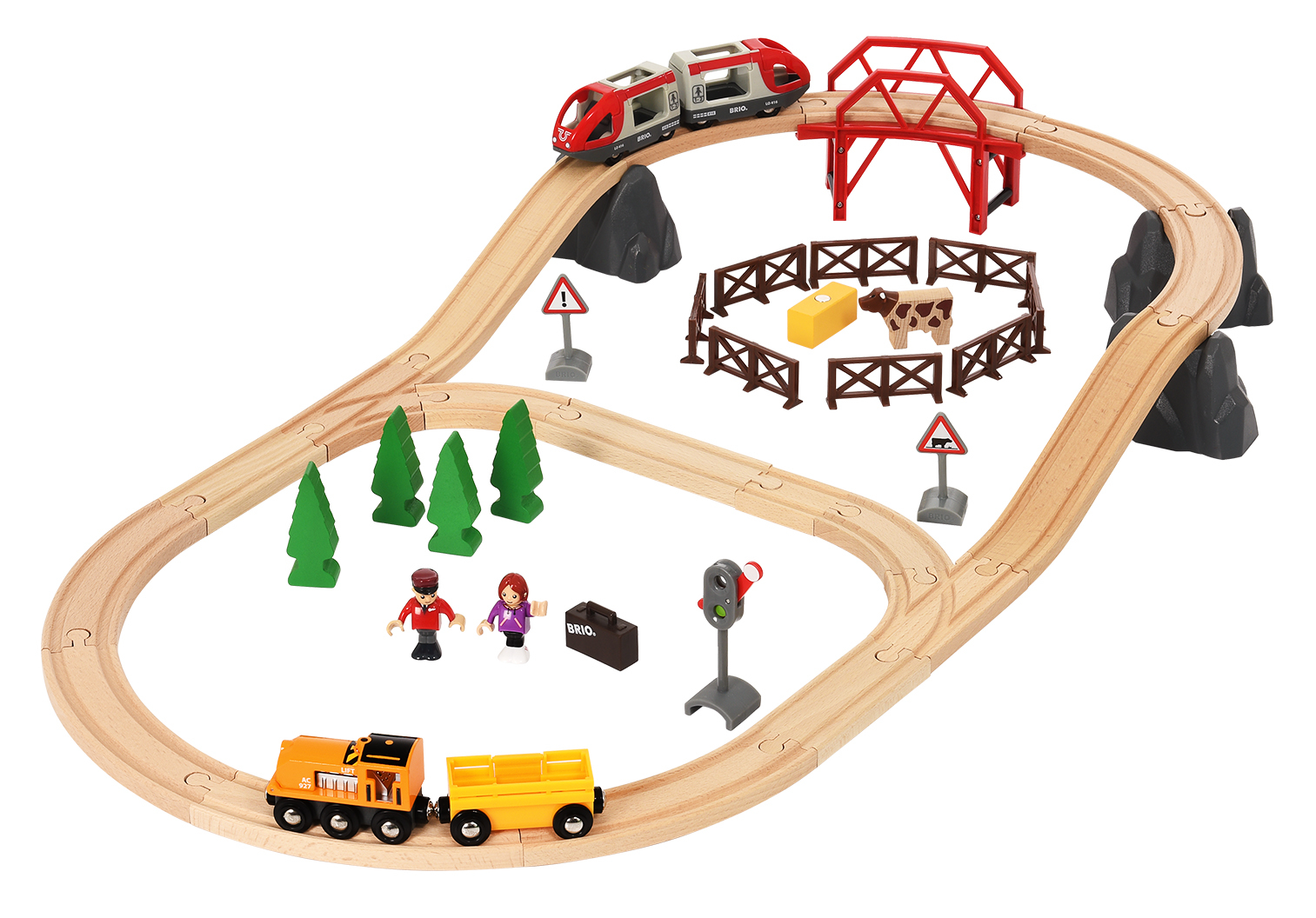 Ah, frische Luft! Mit diesem Set nimmst du die Passagiere mit zu einer Reise aufs Land, um zu sehen, wie die Kühe ausgeladen werden, und um den schönen Ausblick von der roten Brücke zu genießen. Vielleicht kommt es aber zu einer Verspätung, weil Kühe die Gleise blockieren. Tüt-tüt! Spieleranzahl: beliebig. Spieldauer: beliebig.