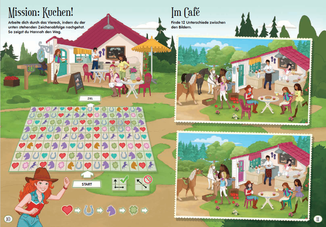 Pferdestarke RätselabenteuerRätseln mit Hannah, Lisa, Sofia und SarahNeuer Rätselspaß in Lakeside mit den vier Freundinnen Hannah, Sofia, Lisa und Sarah: Aufregende Missionen und knifflige Aufgaben machen das Schleich® Horse Club "Pferdeabenteuer auf Lakeside" zu einem Muss für alle Pferdefreunde und Reitbegeisterte. In abwechslungsreichen und altersgerechten Aufgaben können Kinder bekannte Handlungsorte und Charaktere des Reiterhofes spielerisch kennenlernen und neu entdecken.Mit diesem liebevoll handgezeichneten Rätselbuch steht der Kreativität nichts im Weg. Pferdestarke Rätselmissionen laden dazu ein, alle Seiten und auch das eigene Kinderzimmer individuell zu gestalten.Das Rätselbuch eignet sich für begeisterte Horse Club-Fans ab 6 Jahren.© Schleich 2020