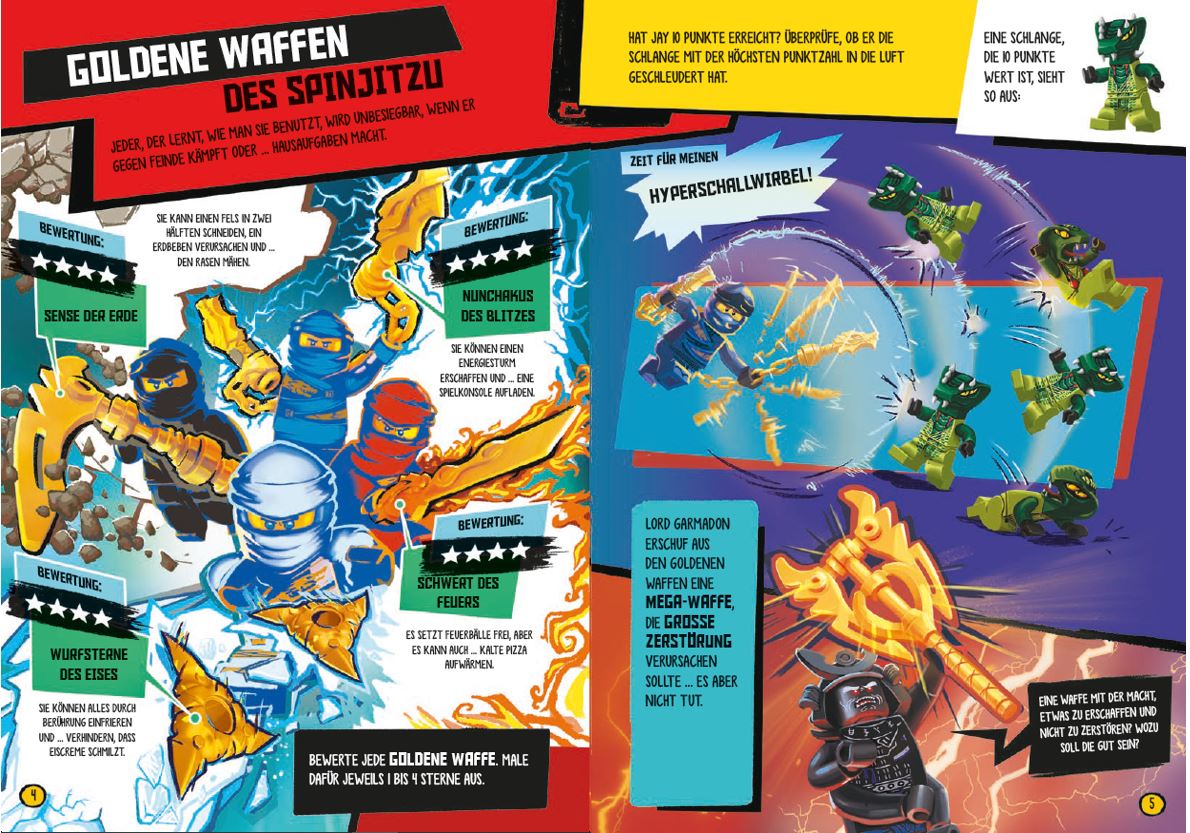 Ein Ninja kommt selten alleinMit tollen Accessoires für Ninja-MinifigurenFür alle, die sich schon immer neues Zubehör für Ninja-Figuren gewünscht haben: In dem neuen Format von LEGO® Ninjago® sind tolle Accessoires dabei, mit welchen das Lösen von Rätseln und kniffligen Aufgaben keine große Herausforderung darstellt. Fans der mutigen Ninja können mit den Goldenen Waffen des Spinjitzu neue und actionreiche Abenteuer der Schüler von Meister Wu miterleben und im eigenen Kinderzimmer nachspielen. Aufregende Missionen warten auf die Ninja und ihre tatkräftigen Unterstützer.Mit detailgetreuen und handgezeichneten Illustrationen erwacht die Welt von NINJAGO zum Leben. Der LEGO® Humor sorgt für einen großen Rätselspaß und bringt jeden Fan zum Lachen. Mit den tollen Accessoires ist ein unendlicher Spielspaß garantiert.Das Rätselbuch eignet sich hervorragend für Kinder ab 6 Jahren.LEGO, the LEGO logo, the Brick and Knob configurations, the Minifigure and NINJAGO are trademarks of the LEGO Group. ©2020 The LEGO Group.Produced by AMEET Sp. z o.o. under license from the LEGO Group