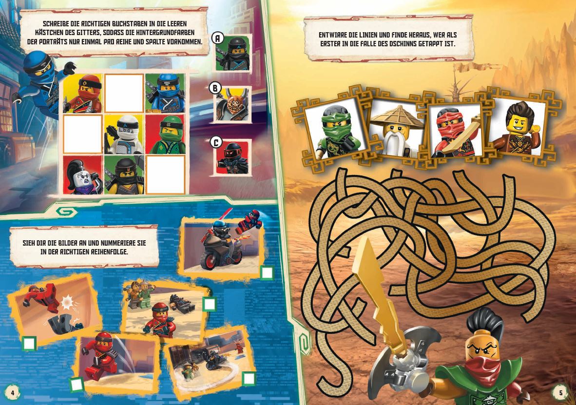| Schlagworte | Beschäftigung • Cole • Freunde • Freundschaft • Jay • Kai • LEGO • Lloyd • Meister • Ninja • Ninjago • Nya • Rätsel • Sieg • Spinjitzu • Wu • Zane |