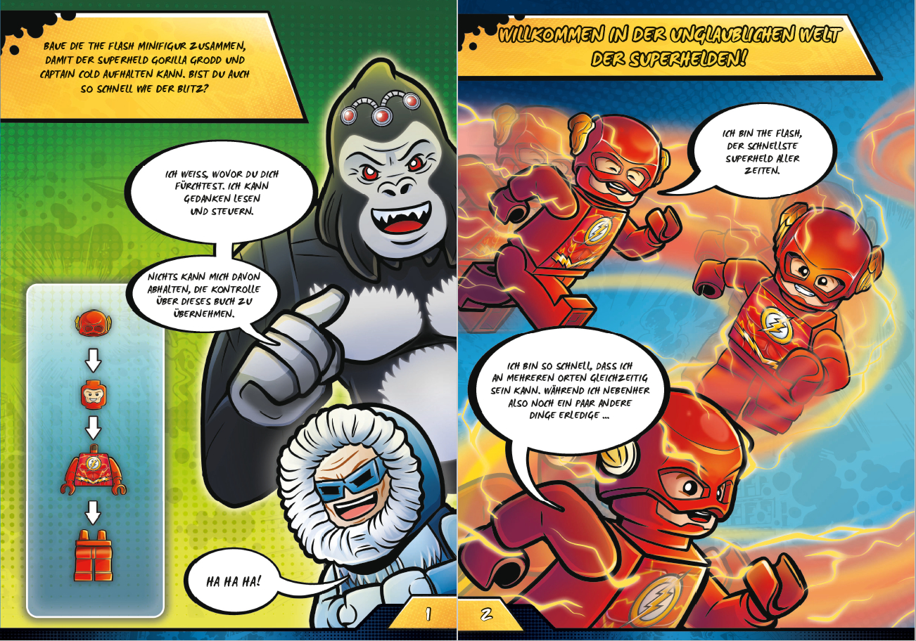 Lustige Comics mit The Flash(TM) und seinen Superhelden-Freunden warten auf Kinder ab sechs Jahren. Egal ob im Sumpf oder in der Stadt - mit der LEGO® Minifigur des schnellsten Mannes der Welt ist das Lösen der Rätsel kein Problem.