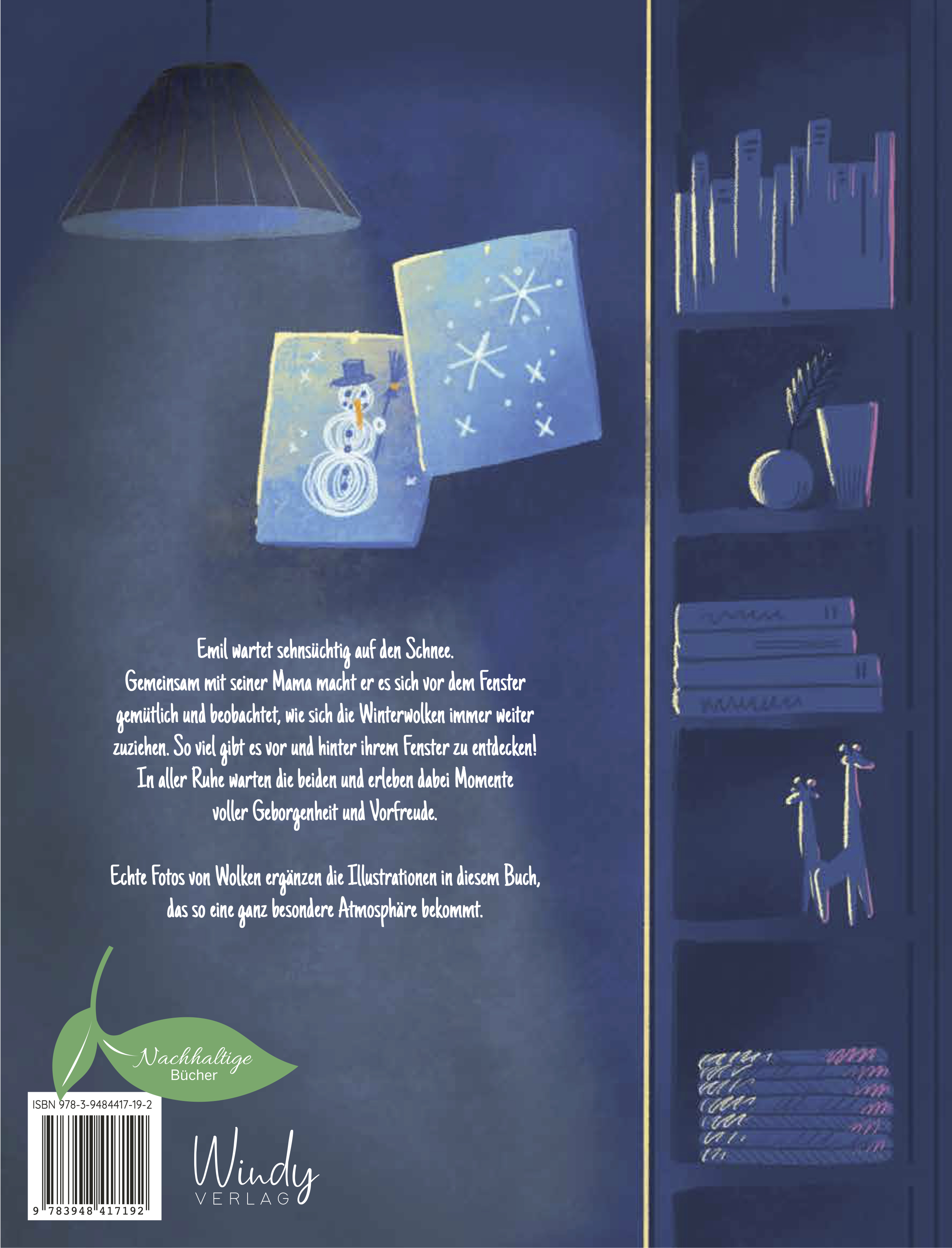 Im Warten auf den ersten Schnee liegt ein besonderer Zauber"Bald kommt Schnee," hat Mama gesagt. Emil wartet sehnsüchtig auf die ersten Schneeflocken, die den Winter ankündigen. Zusammen mit seiner Mutter macht er es sich auf der Fensterbank gemütlich. Warm und geborgen beobachten sie die Schneewolken am Himmel und sehen, wie es draußen immer dunkler wird. Und dann beginnt es tatsächlich zu schneien ...Das Bilderbuch "Wir warten auf den Schnee" fängt ganz unaufgeregt die zauberhaften Momente der gemeinsamen Vorfreude von Mutter und Sohn ein. Mit Ruhe und Achtsamkeit entdecken die beiden vieles, was sonst im lauten Alltag untergeht. Das leise Ticken einer Uhr, die flatternden Falter in der Straßenlaterne und die vielen Lichter in der Dunkelheit sorgen dabei für eine besondere Atmosphäre der Zweisamkeit.Ob abends beim Zubettgehen oder für Ruhepausen im Kindergarten: Das Bilderbuch "Wir warten auf den Schnee" ist eine achtsame Wintergeschichte voller liebevoller Details, Gemütlichkeit und Vorfreude auf den Winter.Atmosphärisches Bilderbuch mit zauberhaften Illustrationen von Anna ZörnerEin Buch über Achtsamkeit, das Kindern im Alltag einen ruhigen Moment schenktReale Wolkenfotos auf jeder Seite zeigen, wie sich der Himmel in der Abenddämmerung verändertKlimaneutraler Druck auf FSC-zertifiziertem Papier aus forstwirtschaftlich-nachhaltigen BetriebenZum Vorlesen für Kinder ab 4 JahrenGeduld üben: Wartezeit voller Magie und liebevoller Zweisamkeit