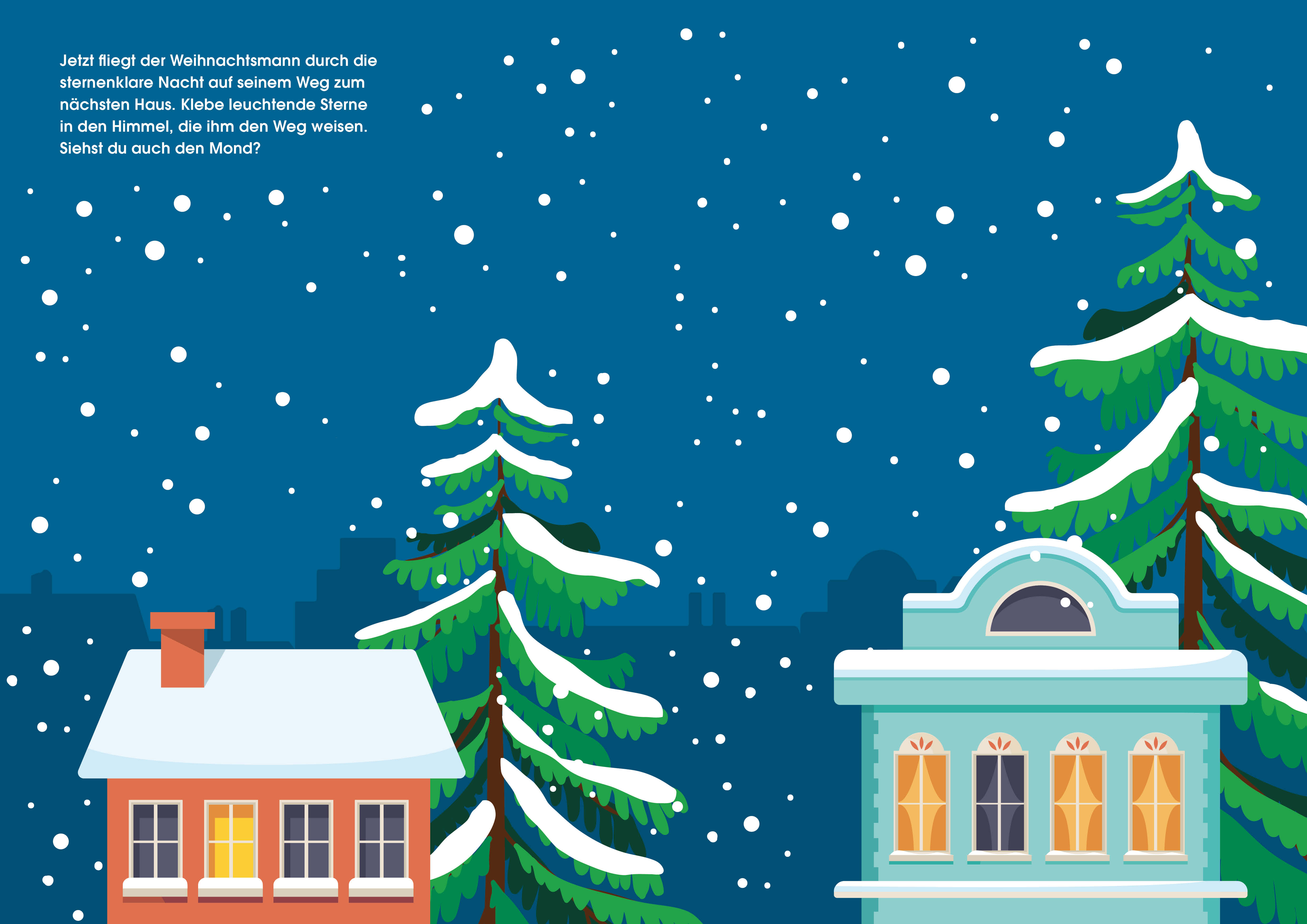 Fröhlich stickern und dabei Wörter lernen: Stickerbücher sind bei Kindern sehr beliebt! Hintergründe werden mit bunten Aufklebern zum Leben erweckt und neue Welten entstehen. Schon ab 3 Jahren können die Kleinen selbstständig stickern, spielen und Wörter lernen. Durch die 250 großflächigen Sticker entstehen lustige Geschichten rund um das Weihnachtsfest. Das Aufkleben fördert spielend die Koordination und die Feinmotorik, mit den fröhlich-bunten Illustrationen von Winterwald, Weihnachtsmarkt, Bescherung und Co., Bildwörtern und kurzen Texten wird das erste Sachwissen vermittelt. Dadurch entsteht ein wunderschönes Bilderbuch, das immer wieder angeschaut werden kann. So steigt die Vorfreude auf Weihnachten!
