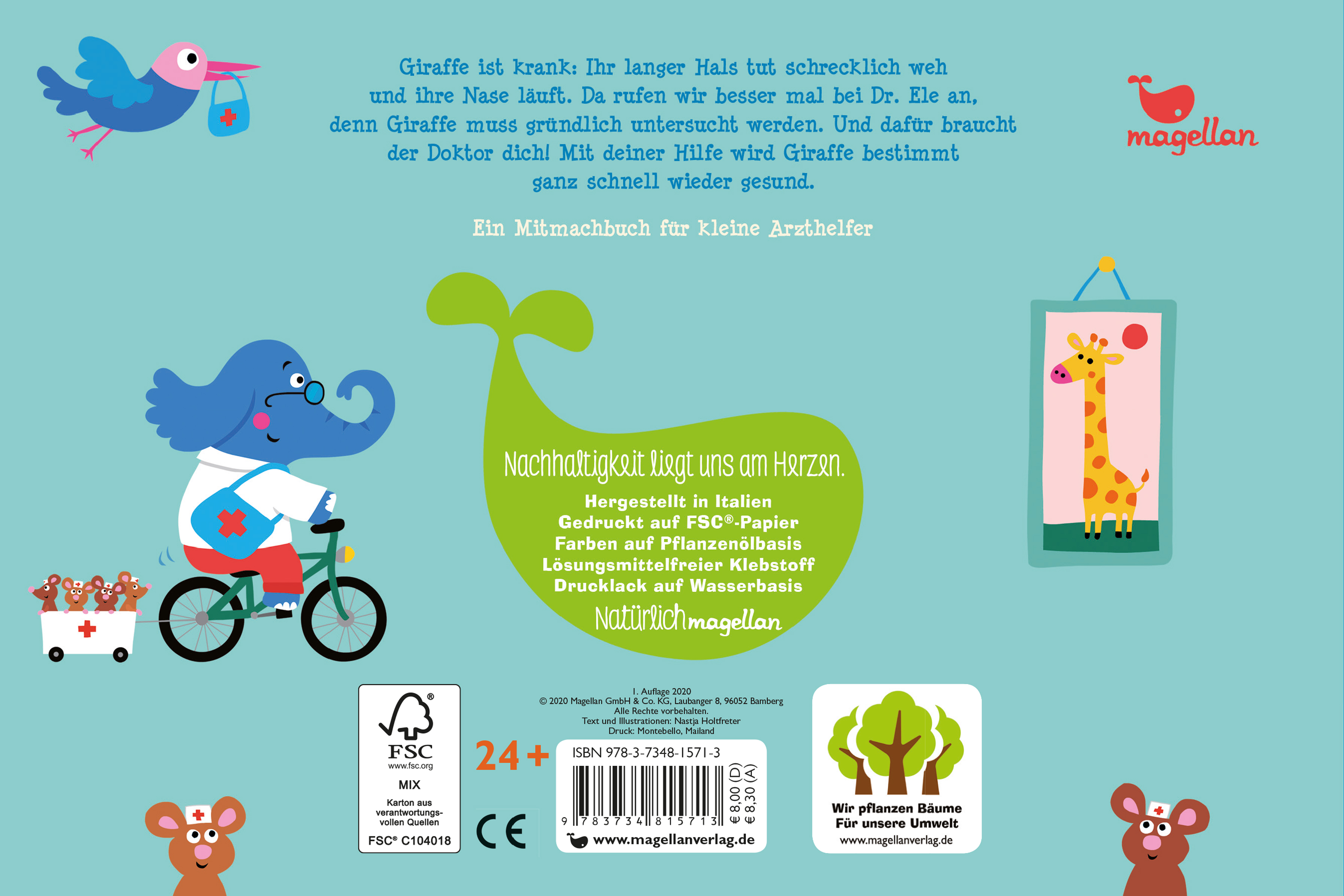 | Schlagworte | Bilderbuch ab 2 • Doktor • Doktor, Medizin, Arzthelfer • Fieber • Gesund werden • Giraffe, Elefant, Maus • Hals tut weh • Kinderalltag • Kinderbuch • krank sein • Krank sein, gesund werden • Lustige Reime zum Schmunzeln • Lustige Reime zum Vorlesen • Medizin • Mitmachbuch für Kinder ab 2 • Mitmachbuch für Kinder ab 2 Jahren • Nase läuft • Nastja Holtfreter Bunte Welt • Pappbilderbuch ab 2 Jahren • Pappbilderbuch über den Arztbesuch • Tiergeschichte • Tiergeschichte über das Kranksein |
