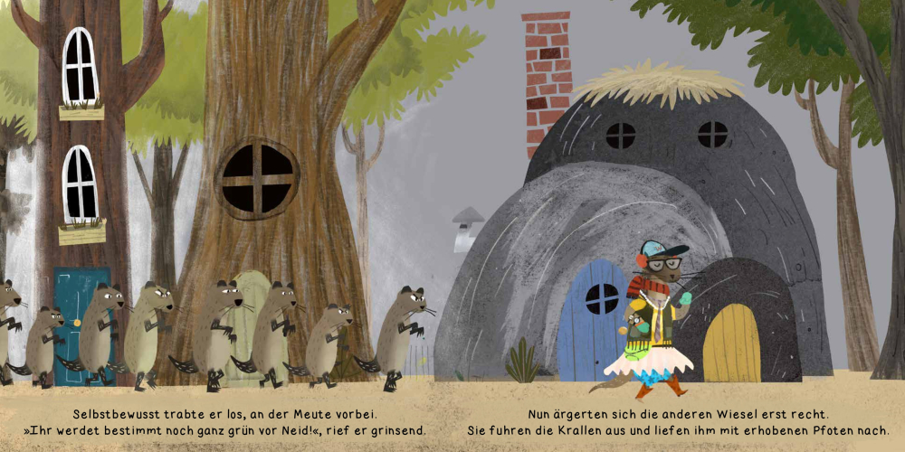 lt;p>Alle Wiesel im Wald führen ein ähnliches, unauffälliges Leben. Alle außer Theo! Er liebt es, die buntesten und schrillsten Outfits zu tragen und all das zu tun, was man als Wiesel eigentlich nicht tut. Nie im Traum hätte er daran gedacht, dass er die anderen Wiesel damit gegen sich aufbringt. Jeder sollte sich anpassen, finden sie. Als es ihnen zu bunt wird und sie sich Theo mit Protestschildern in den Weg stellen, ist er sehr traurig und verlässt den Wald. Die Wiesel freuen sich, dass endlich wieder alles seinen normalen Gang geht. Oder vermissen sie Theo vielleicht doch, gerade weil er anders ist?