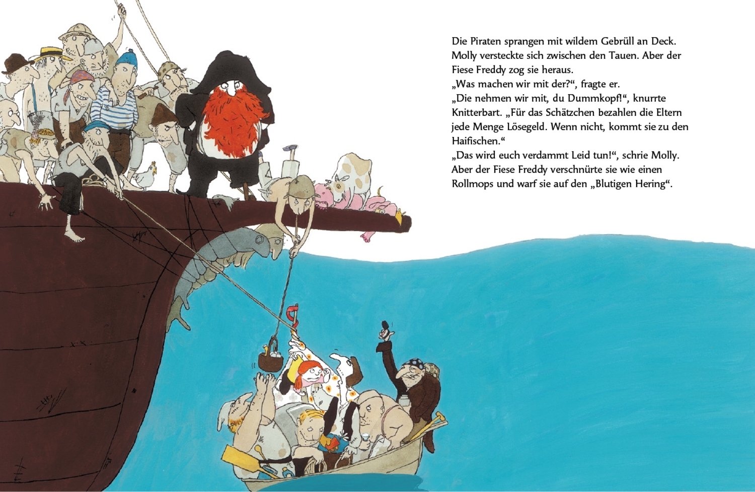 Die kleine Molly und der Schrecken aller Meere. Käpten Knitterbart ist der wildeste aller Piraten. Wenn sein Schiff am Horizont erscheint, zittern alle ehrlichen Seeleute vor Angst wie Wackelpudding. Niemand ist vor seiner Bande sicher. Aber ein Schiff hätte er besser vorbei fahren lassen sollen. An Bord ist nämlich ein kleines Mädchen namens Molly.
