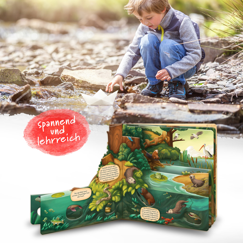 Dieses lehrreiche Kinderbuch erklärt den Lebensraum der Tiere am Wasser. Das Fensterbuch ist ideal für kleine Naturfreunde zum Anschauen, Lesen und Entdecken. Mit lehrreichen Texten, kleinen Fenstern für extra Einblicke und detailreiche und liebevoll illustrierte Seiten.