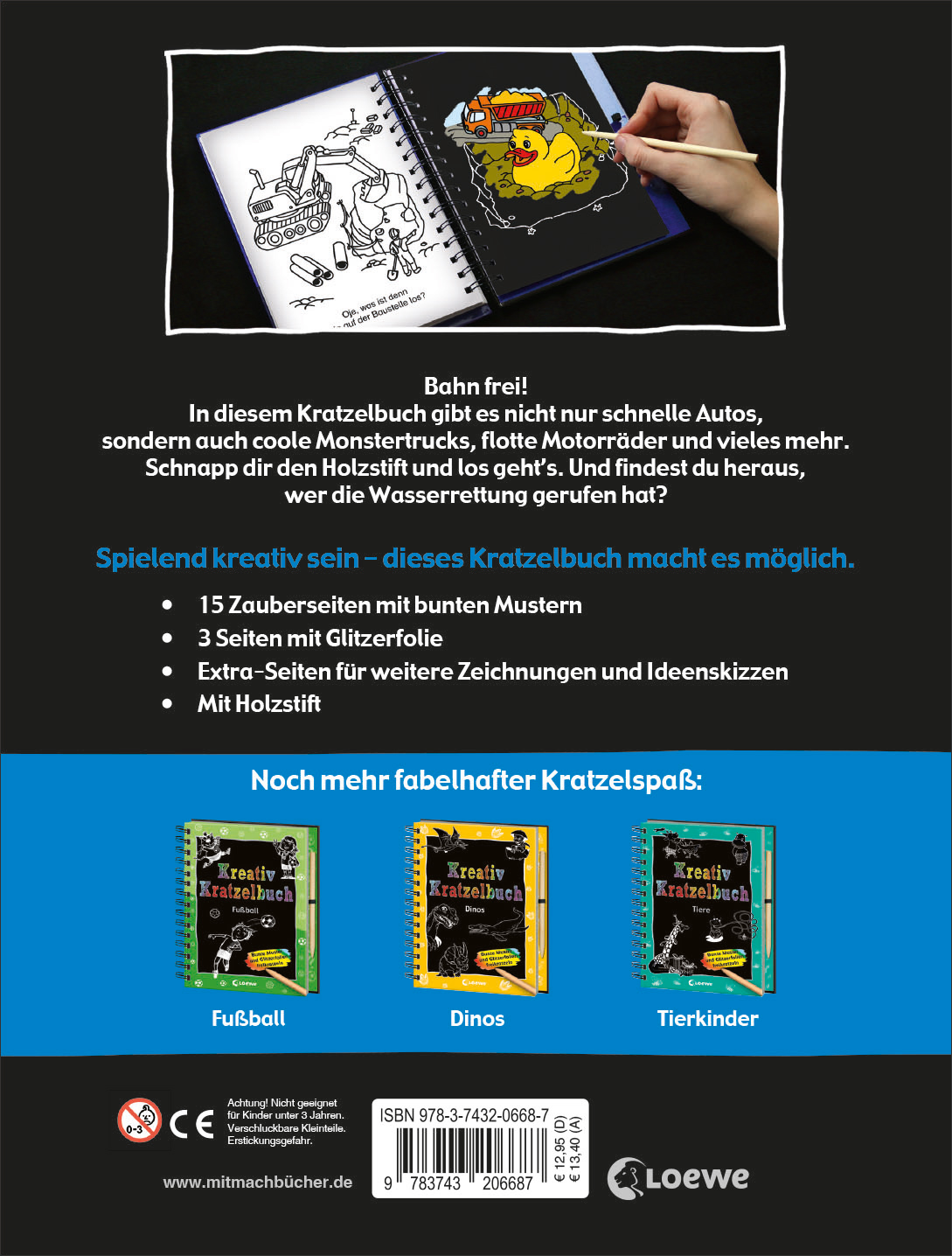 In diesem Kratzelbuch kommen Fahrzeugfans so richtig auf ihre Kosten! Ob Monstertrucks, coole Rennautos oder brandneue Motorräder – hier ist für jeden etwas dabei! Und auch auf der Baustelle gibt es einiges zu entdecken, denn dort wurde ein unglaublicher Fund gemacht.